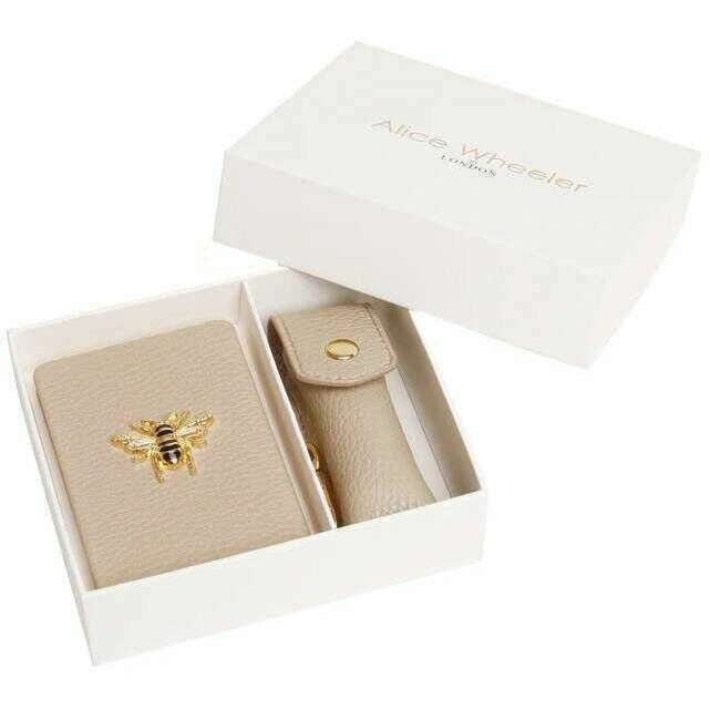 ({IF["Perfect for women is this Alice Wheeler London stone beige oblong compact mirror and lipstick holder gift set, it is also made from 100% vegan faux leather. It measures mirror - 8.5cm(height) x 6cm(width) lipstick holder - 8.5cm(height) x 3cm(width) x 3cm(depth). All the compacts come complete with alice wheeler packaging. The Alice Wheeler London Oblong Compact Mirror and Lipstick Holder Gift Set - Stone Beige will make a stunning gift to yourself or someone you love. The beautifully iconic bee embellishment is featured on the mirror, and both have matching colours and hardware, making them a stylish matching pair. The mirror is great for everyday touch ups, and the lipstick holder is perfect for protecting your favourite everyday lipstick in style. These will be a perfect addition to your everyday bag, adding convenience."!=""]})