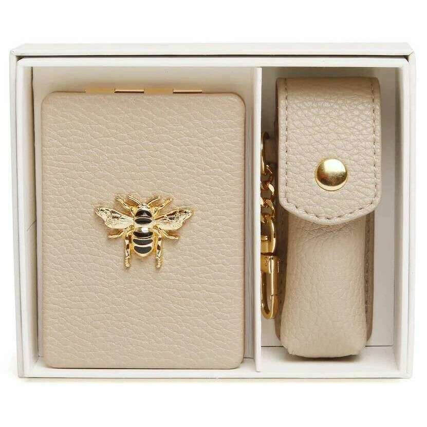 Alice Wheeler London Oblong Compact Mirror and Lipstick Holder Gift Set - Stone Beige