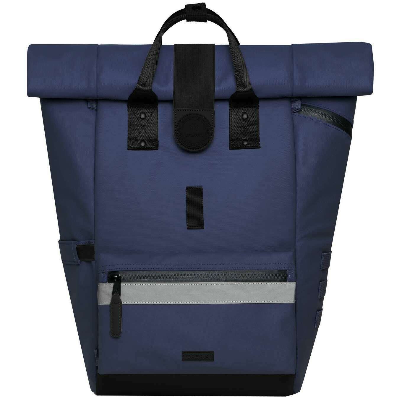 This unisex explorer medium backpack by the brand Cabaia is made from 100% recycled polyester and is showcased in blue. It measures 40cm(height) x 25cm(width) x 16cm(depth). It is recommended to wipe clean to keep this bag in good condition. All the bags come complete in cabaia packaging. The Cabaia Explorer Medium Backpack - Odense Blue offers a stylish and sustainable solution for individuals seeking eco-friendly and comfortable backpacks. Featuring a main 15-inch laptop compartment, this popular rolltop backpack allows you to easily adjust its size to fit all your essentials securely. The outside pocket with zipper provides additional storage options for quick access to essentials like your phone or keys. Full of features including: magnetic closure buckle, reflectors on the front pocket and straps, back padding, a side opening, pocket outside for water bottle, a chest system and a waterproof coating, it is ideal for everyday use. With a generous volume of 23 litres, this vegan friendly backpack not only looks good but also contributes to a greener future.