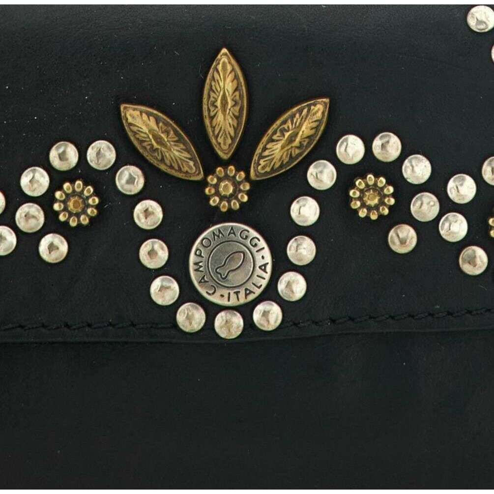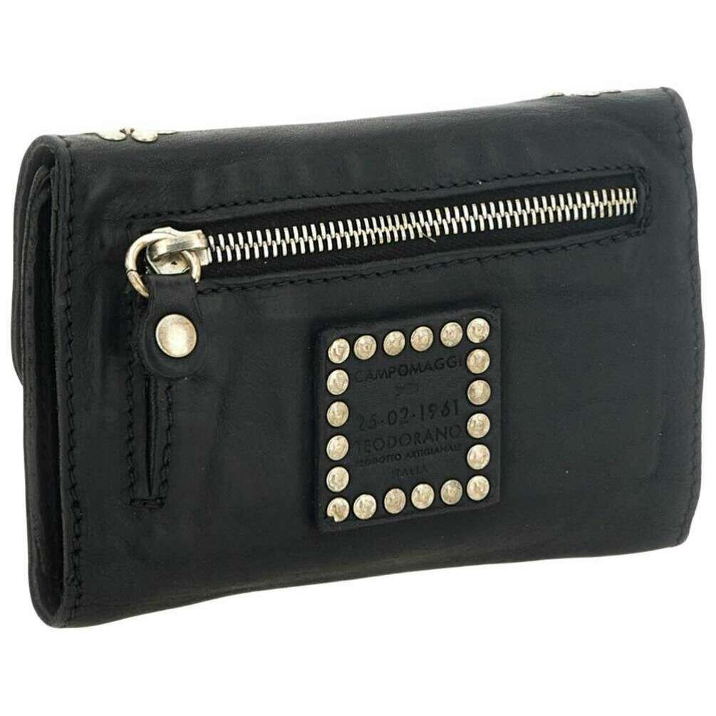 Manufactured from 100% vegtable tanned cowhide leather is this black women's mirta siena flap over purse by the designer Campomaggi. It measures 14cm(height) x 10cm(width) x 1.5cm(depth). Campomaggi have made this mirta siena flap over purse in Italy. All the purses come complete with campomaggi packaging. The Campomaggi Mirta Siena Flap Over Purse - Black is a refined accessory that showcases the brand s distinctive Italian craftsmanship. Made from premium vegetable?tanned cowhide leather, it develops a rich patina over time, reflecting the natural beauty and durability of the material. The front is adorned with an elegant stud design, adding a subtle decorative touch that enhances its classic silhouette. Secured with a press stud closure, the purse opens to reveal a thoughtfully organised interior featuring three compartments and ten card holders ideal for keeping cards, cash, receipts, and essentials neatly arranged. Despite its structured layout, the design remains slim and easy to carry, making it perfect for everyday use. Handmade in Italy, the Campomaggi Mirta Siena Flap Over Purse blends functionality, artisanal detail, and timeless style, making it a sophisticated addition to any accessories collection.