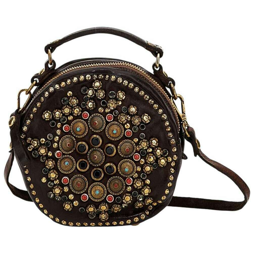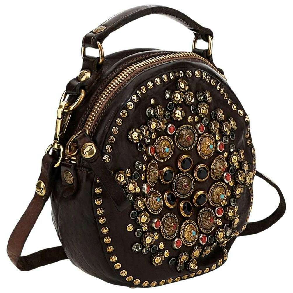 Introducing this women's ribes round bowling bag by Campomaggi, it is manufactured from 100% calf leather in a brown colour. It measures 16cm(height) x 19cm(width) x 7cm(depth). Campomaggi have made this ribes round bowling bag in Italy. All the bags come complete with campomaggi packaging. The Campomaggi Ribes Round Bowling Bag - Brown is a compact yet distinctive accessory, crafted for those who value artisanal detail and timeless Italian design. Shaped in a refined round silhouette with a top carry handle and adjustable crossbody strap, it is an elegant choice for carrying daily essentials without bulk. It is a beautifully made accessory featuring a stunning stud design that brings together practicality, style, and Italian heritage in one thoughtfully designed piece.