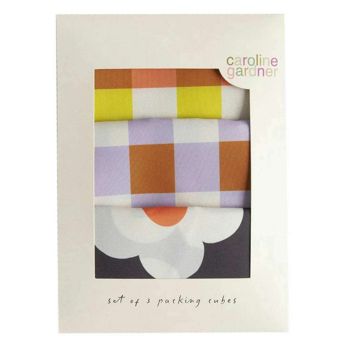 Caroline Gardner 3 Pack Flower and Check Packing Cubes Set - Multi-colour