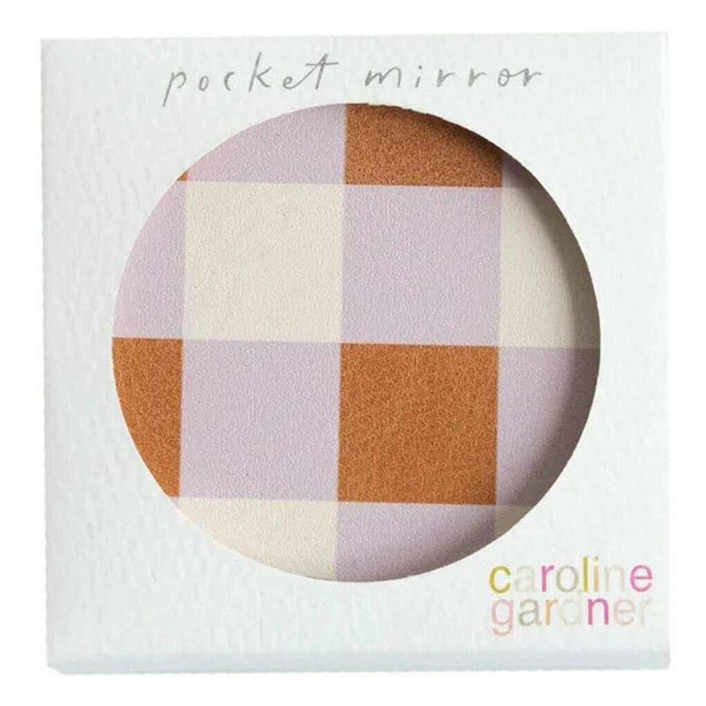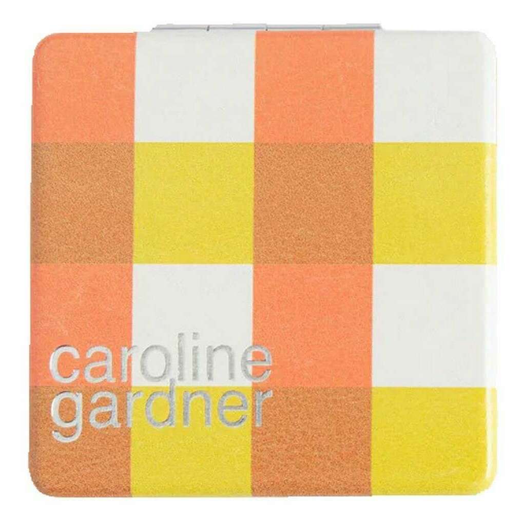 Caroline Gardner Check Square Pocket Mirror - Pink/White/Orange