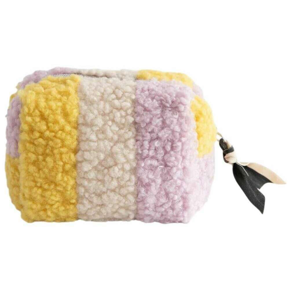 Caroline Gardner Multi Stripe Borg Mini Cube Cosmetic Bag - Lilac/Yellow