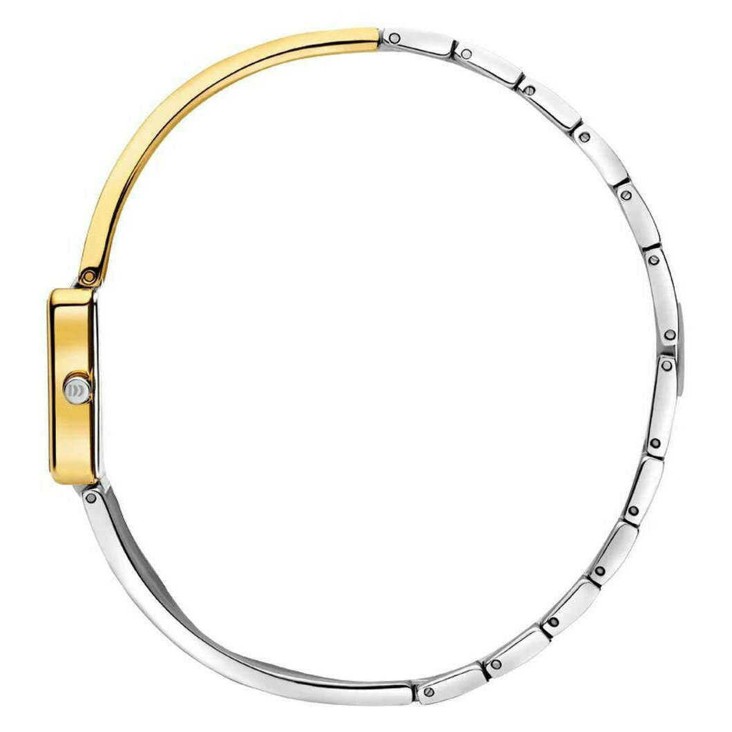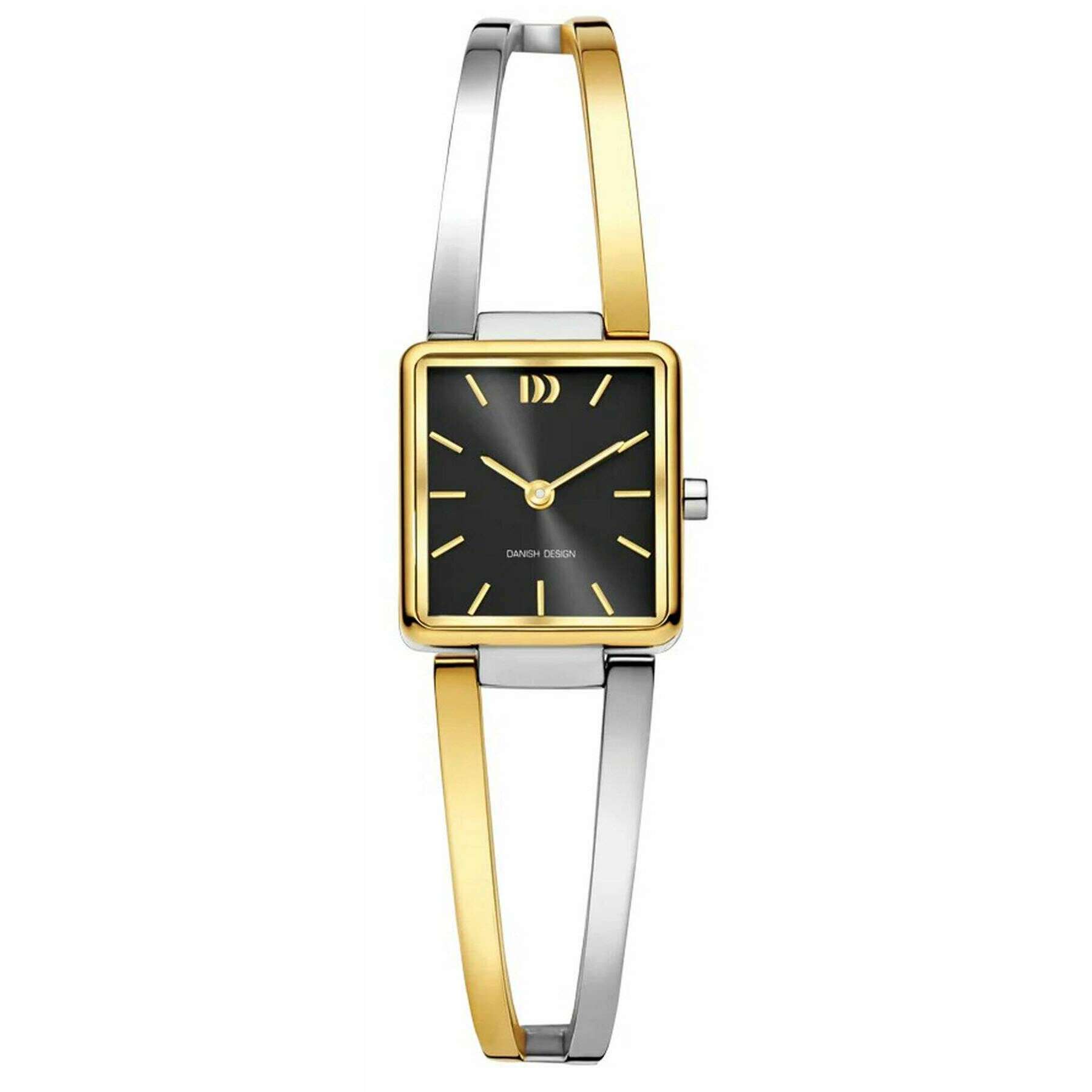 This well made women's palma two-tone watch from Danish Design comes in a silver/gold/black colour and is manufactured from stainless steel. It measures 2cm x 2.6cm(case diameter). All the watches come complete with danish design packaging. The Danish Design Palma Two-Tone Watch - Silver/Gold/Black is a delicate and stylish design that will add a touch of shine and elegance to any attire. Featuring a gold and silver polished metal casing, this stunning watch displays a square dial with gold hands and black face and is securely fastened with a jewellery clasp. Powered by a precise Miyota GL22 quartz movement, and water-resistant up to 3 ATM, this watch combines timeless appeal with everyday practicality. Finished with a unique two-toned bangle style strap.