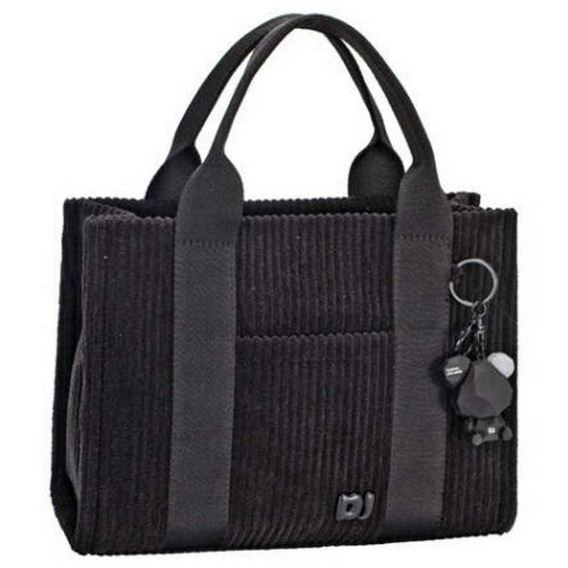 Designer David Jones has brought you this women's 100% polyester bag using black tones. It measures 21cm(height) x 28cm(width) x 11cm(depth). All the bags come complete with david jones packaging. The David Jones Corduroy Tote Bag - Black is a gorgeous accessory designed for daily use. This bag offers a front pocket and back pocket for easy access, a main compartment that closes with a zip and interior pockets to organise your smaller items. With a crossbody strap and top handles for easy carrying this is a practical choice for those seeking a chic and practical everyday bag. Complete with a sweet charm and DJ branding.