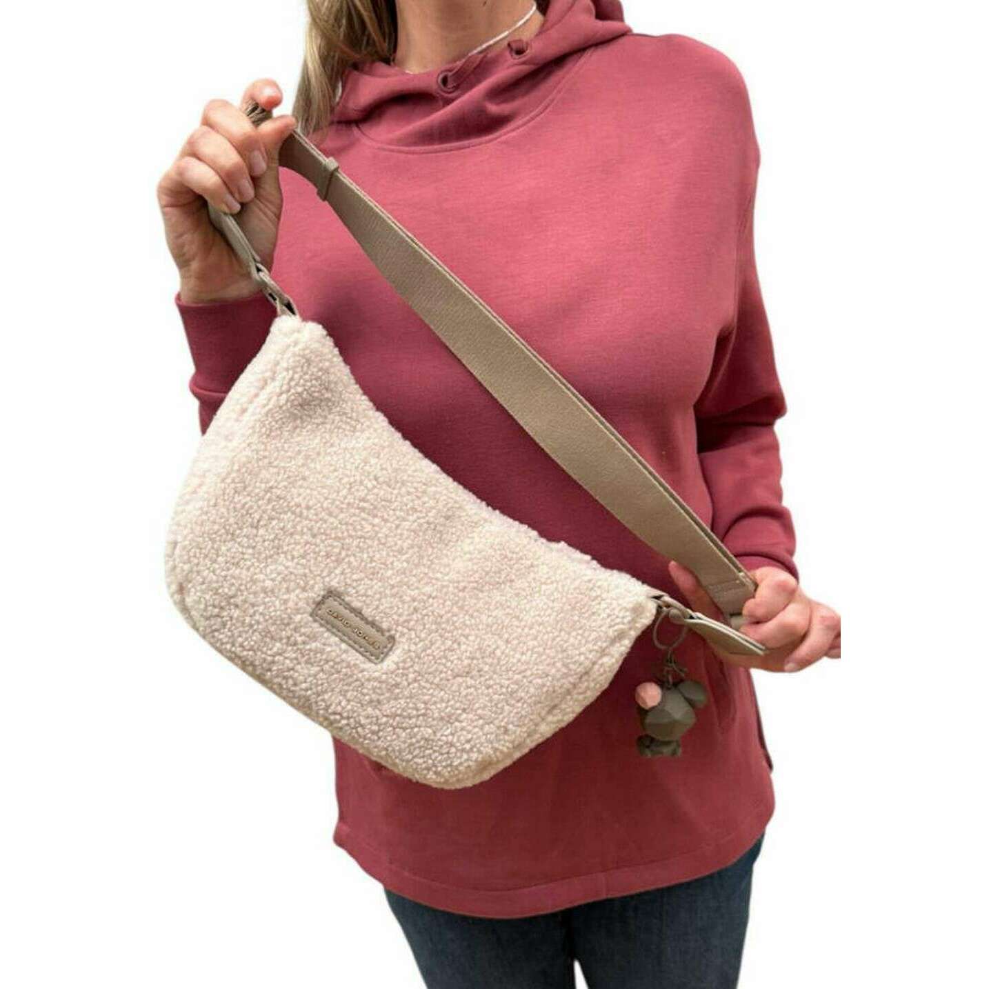 Perfect for women is this David Jones beige faux fur sling bag, it is also made from 95% polyester and 5% polyurethane. It measures 17cm(height) x 22cm(width) x 10cm(depth). All the bags come complete with david jones packaging. The David Jones Faux Fur Sling Bag - Beige is a stylish and versatile accessory designed to add functionality and style to your wardrobe. This bag with a zippered closure also features interior pockets to keep your belongings safe and accessible. Its chic and modern faux fur effect design, exuding contemporary elegance with an adjustable strap which allows you to customise the fit to your preference. You can wear it comfortably over the shoulder or across the body for hands-free convenience. Complete with a cute charm and David Jones branding.
