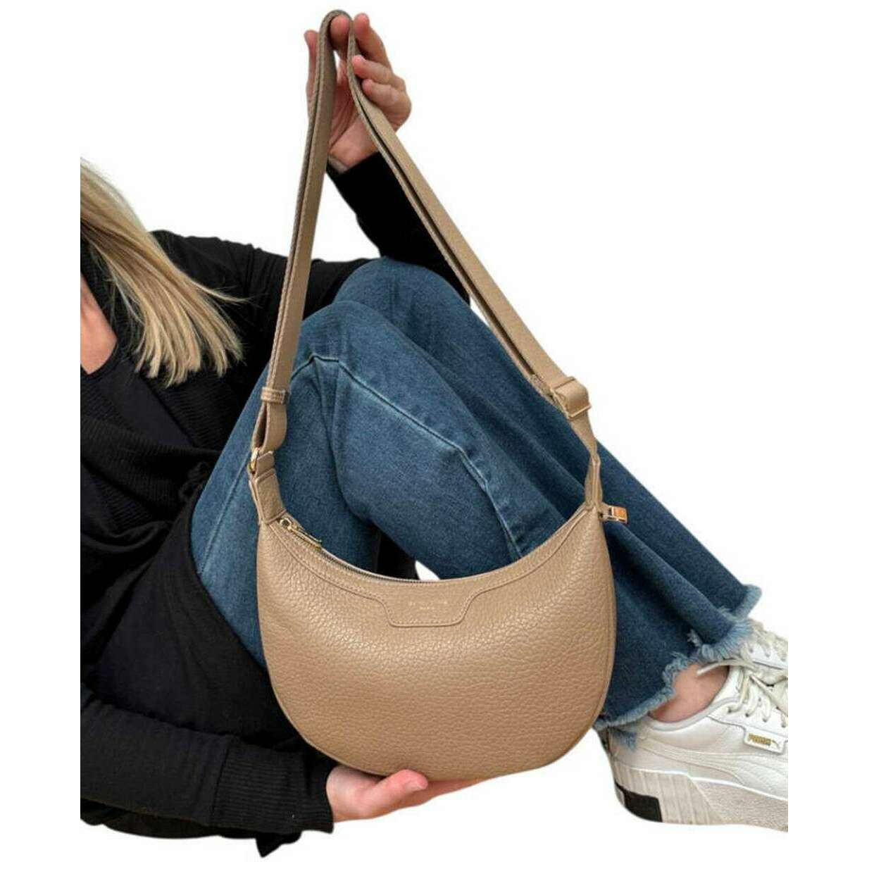 Brought to you by the brand David Jones, this taupe beige women's scoop cross-body bag is made from 100% polyurethane. It measures 25cm(height) x 27cm(width) x 7cm(depth). All the bags come complete with david jones packaging. The David Jones Scoop Cross-Body Bag - Taupe Beige is a stylish and classy accessory designed to add practicality and fashion to your wardrobe. This bag with a zippered closure also features an internal open and zipped pocket to keep your belongings safe and accessible. Its sleek and modern design exudes contemporary elegance whilst having an adjustable strap giving a versatile and customised edge. This hands-free convenience bag is perfect for any occasion.