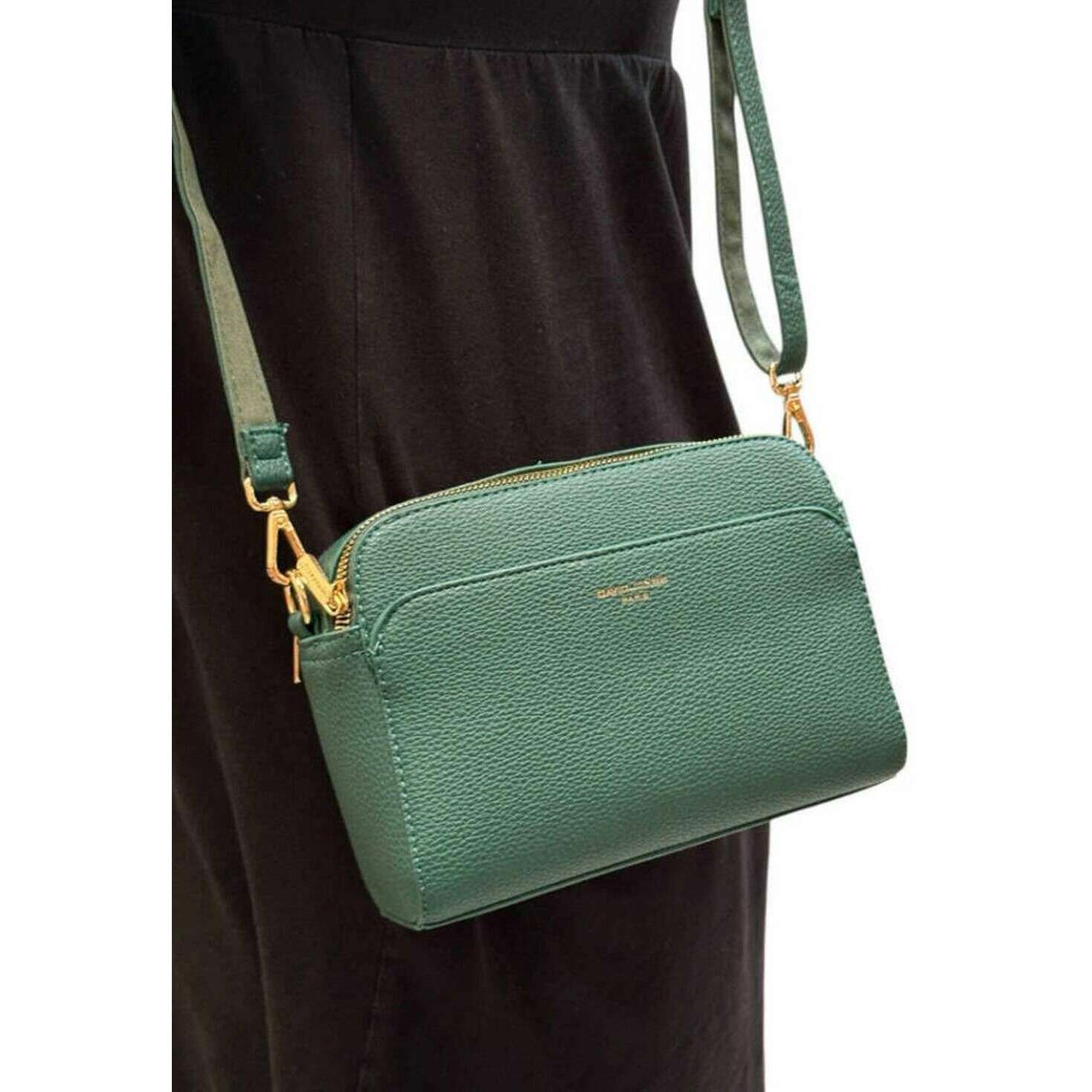 Designer David Jones has brought you this women's 100% polyurethane bag using dark green tones. It measures 16cm(height) x 21cm(width) x 8cm(depth). All the bags come complete with david jones packaging. The David Jones Twin Zip Camera Bag - Dark Green is a stunning hands-free bag to ensure comfort and practicality. The double zip compartments, front mag dot pocket and internal pockets allow extra storage to ensure all your essential items are with you on the go. This stunning sleek and elegant design features subtle David Jones branding giving that simple but elegant look. The detachable adjustable strap offers a customisable fit to offer full comfortability.
