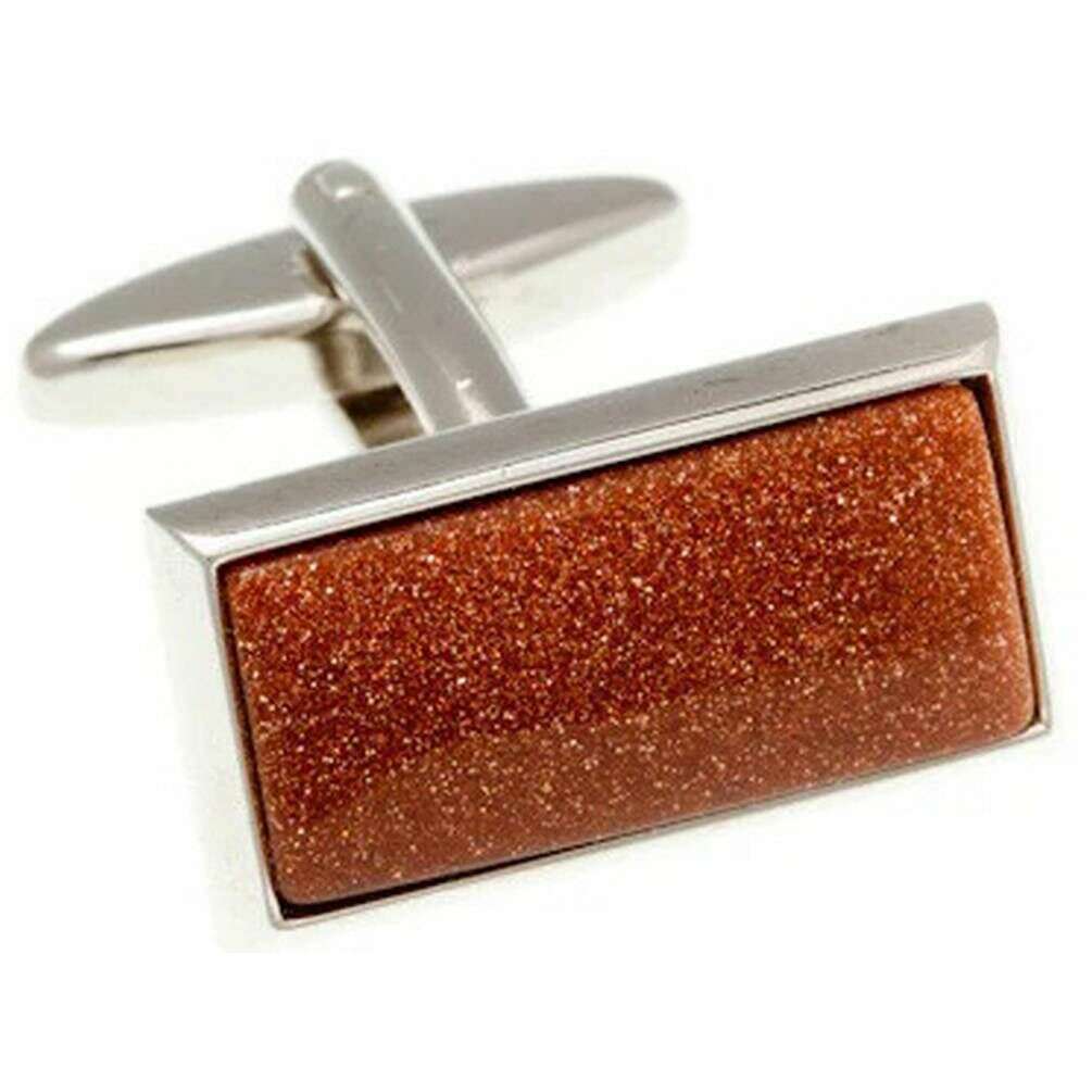 • Cabochon Semi-Precious Brown Goldstone , Strong Polished Edges , Standard Cufflink Bascule
