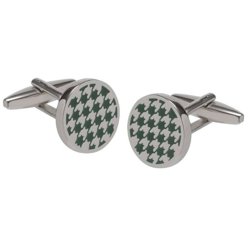 David Van Hagen Houndstooth Cufflinks - Green/Silver