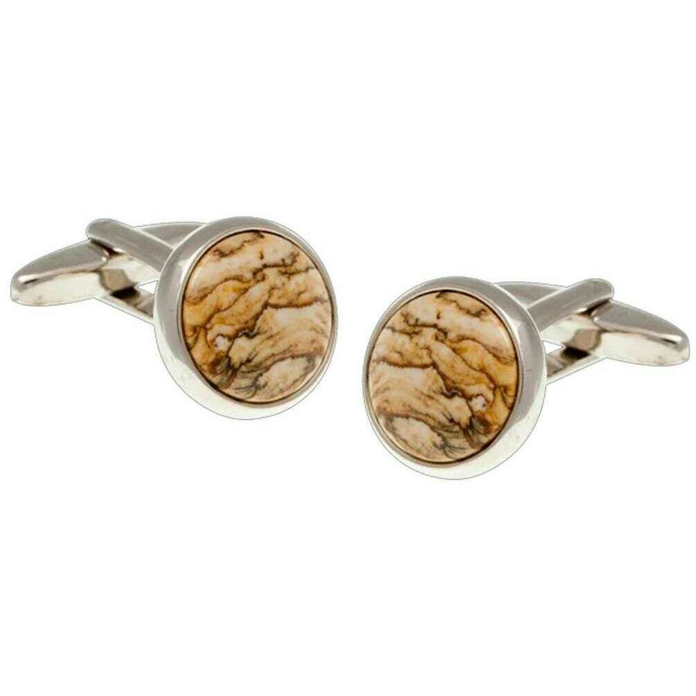 • Cabochon Semi-Precious Jasper Stone , Polished Edges , Standard Cufflink Bascule