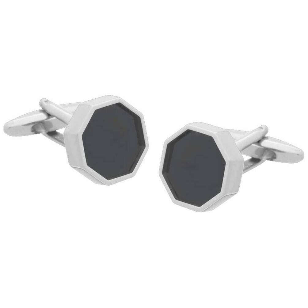 • Semi-Precious Onyx Stone , Sunken Stone , Octagonal Shape , Polished Metal Case , Standard Cufflink Bascule