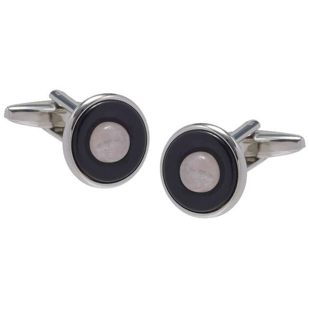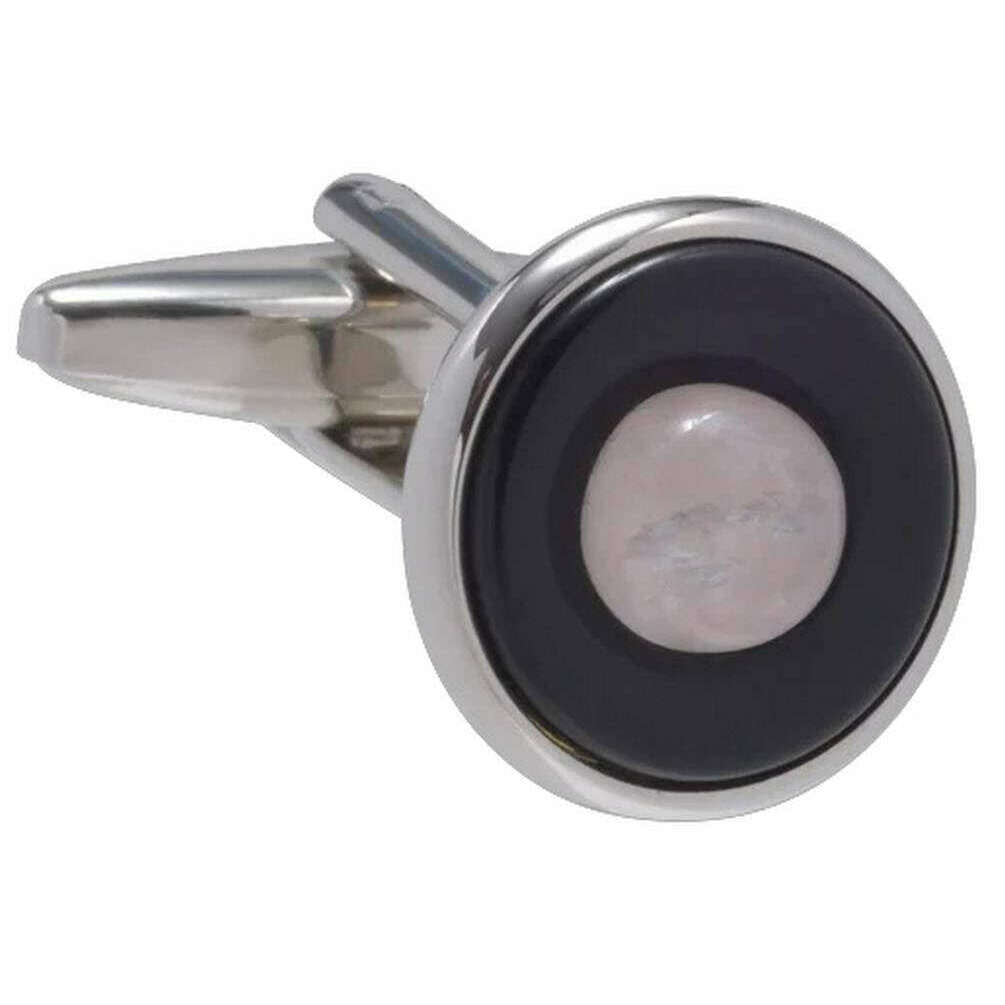 • Inspired by Rings of Saturn , Rose Quartz Cabochon Centre , Onyx Stone Middle , Natural Semi-Precious Stones , Standard Cufflink Bascule