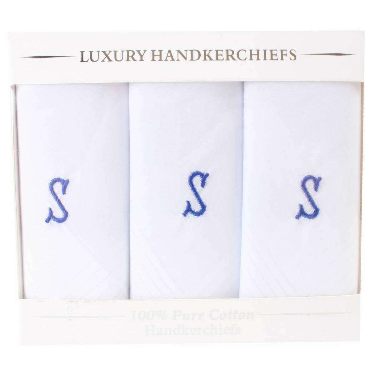 This s initial 3 pack handkerchief for men is fashioned by the brand David Van Hagen in a white colour and is made from 100% pure cotton. It measures 40cm(height) x 40cm(width). Also the white/blue handkerchief is designed in a plain pattern, It is recommended to machine wash at 40 degrees and do not tumble dry or dry clean to keep this handkerchief in good condition. 3 pack handkerchiefs are value for money ensuring they are a good buy, All the handkerchiefs come complete in a presentation box. The David Van Hagen S Initial 3 Pack Handkerchief - White/Blue would make the perfect and meaningful personalised gift for a special gentleman. These are needed for all occasions and will become a handy accessory and a staple for every day. The embroidered letter on the front adds a simple yet classic look with a touch of personality. Crafted from high-quality pure cotton ensures durability that is also highly absorbent and has a luxurious and soft feel.