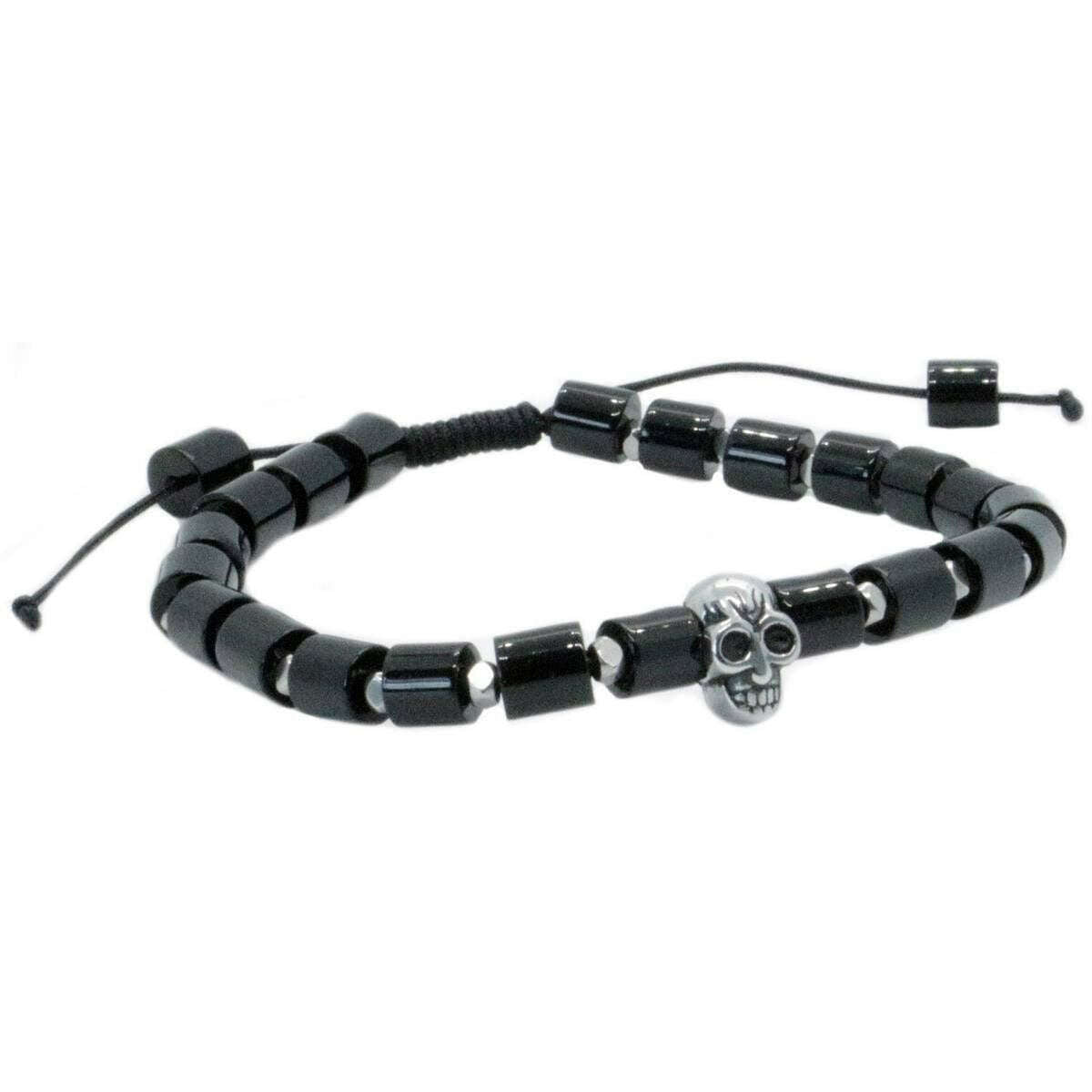 David Van Hagen Skull Bead Agate Bracelet - Black