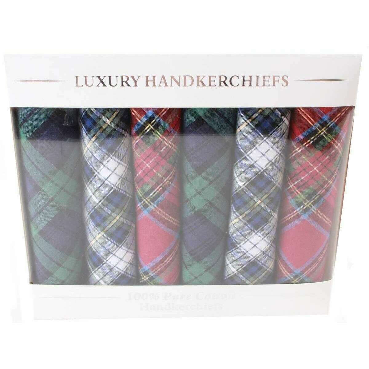 David Van Hagen Tartan 6 Pack Handkerchief - Red/Green/Blue