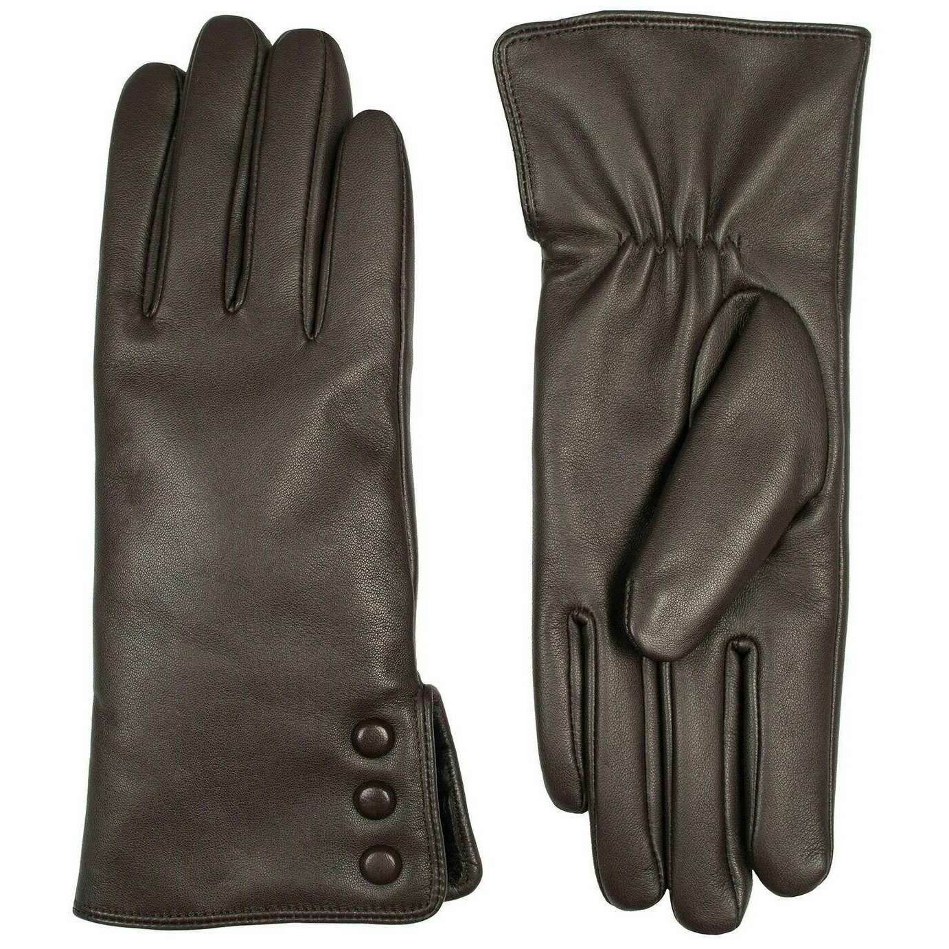 Introducing these women's agata water-resistant leather gloves by Dents, they are manufactured from 100% hairsheep leather and polyester faux fur lining in a mocca brown colour. Also the mocca brown gloves are designed in a plain pattern, All the gloves come complete with dents tags. The Dents Agata Water-Resistant Leather Gloves - Mocca Brown are a luxurious and elegant accessory, perfect for adding sophistication and comfort to any outfit. The interior of these gloves are lined with soft faux fur which adds a layer of warmth and enhances comfort, making the gloves a pleasure to wear. This pair features touchscreen technology enabling you to go on your phone without compromising warmth. These gloves are an ideal accessory for those looking to add a touch of elegance and practicality to their cold-weather wardrobe.