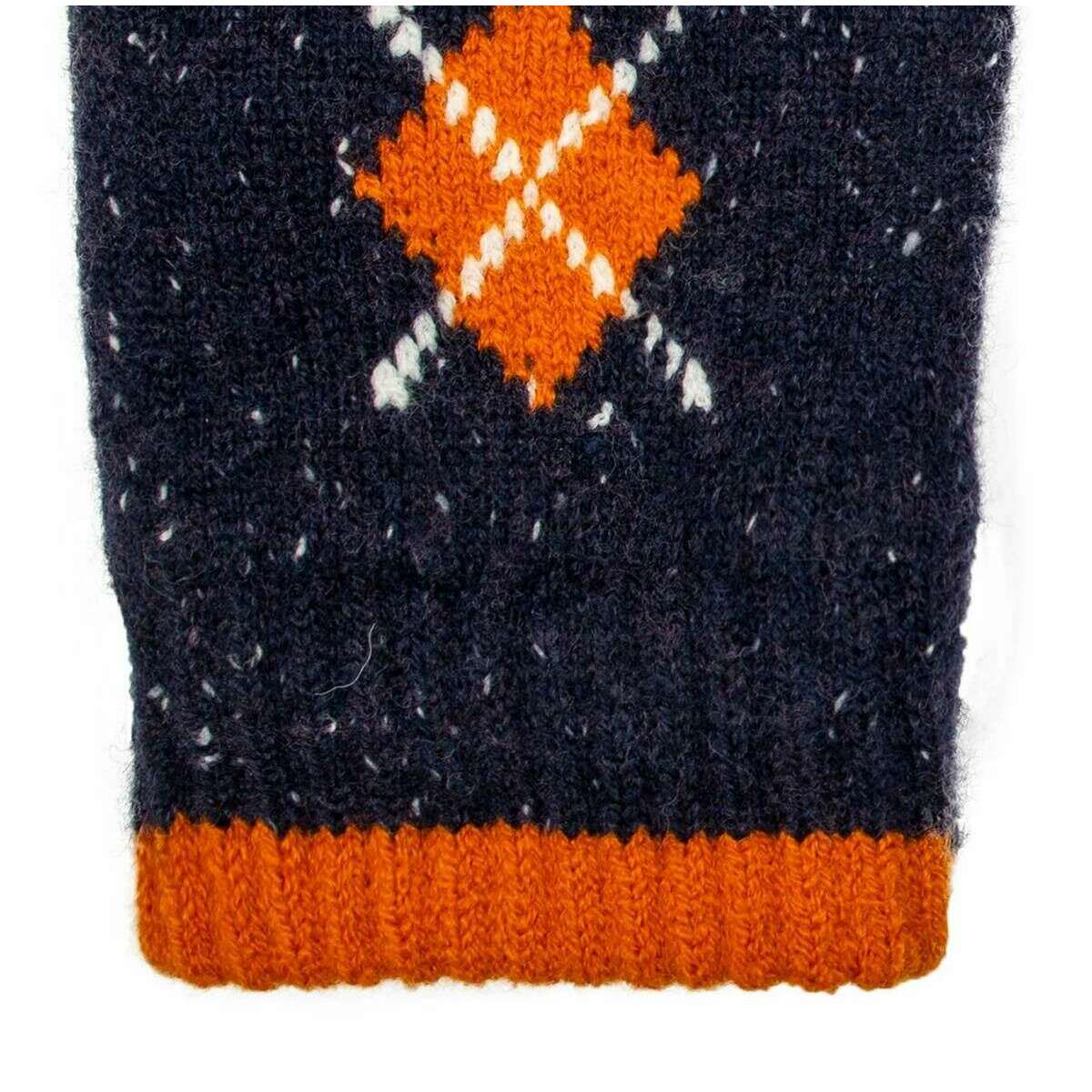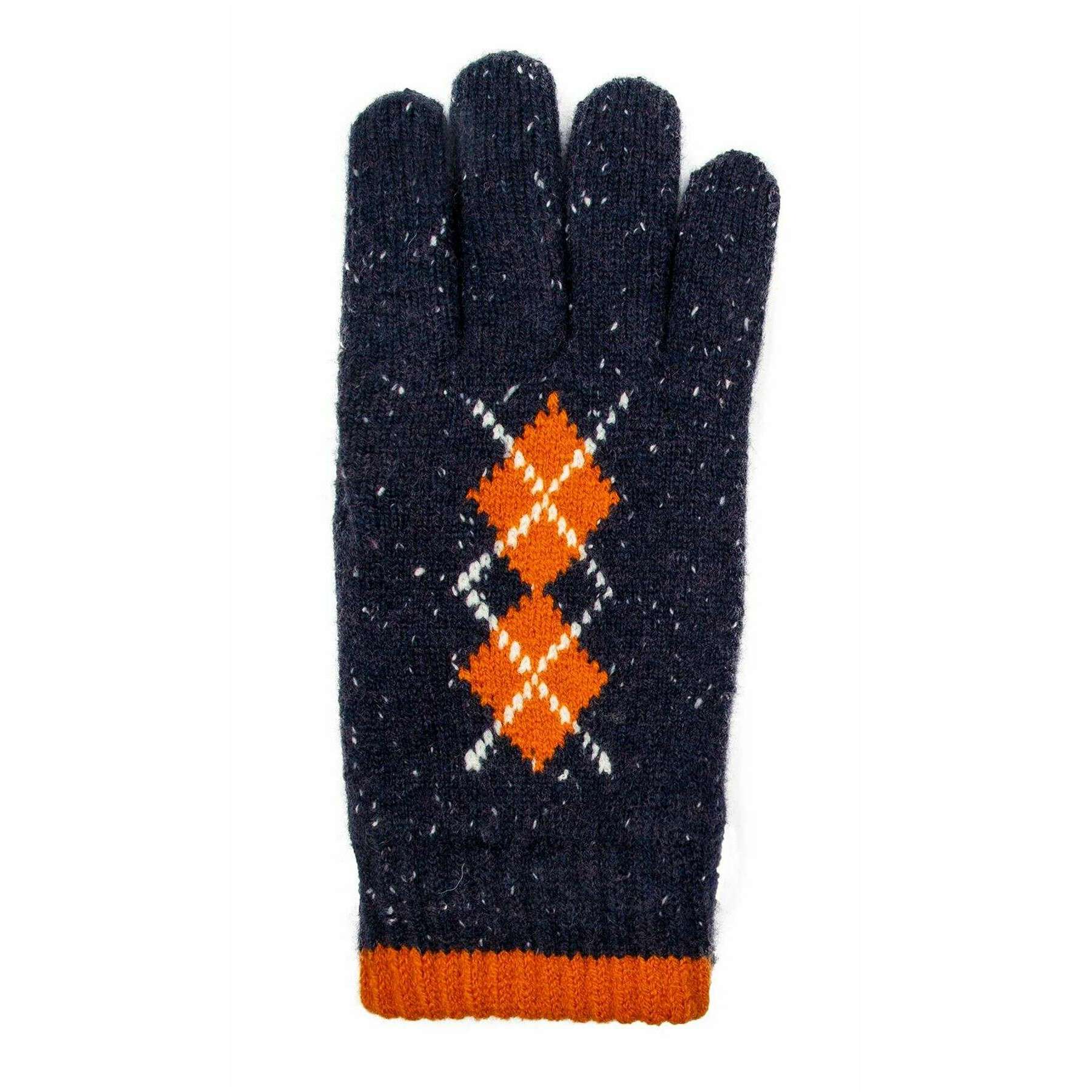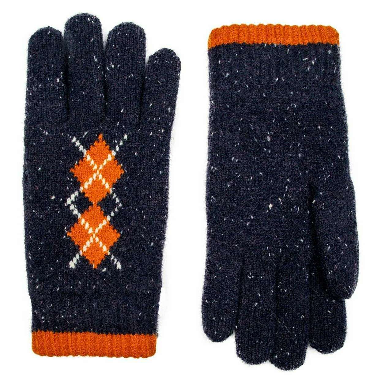 Dents Argyle Marl Yarn Knitted Gloves - Navy/Pumpkin Orange