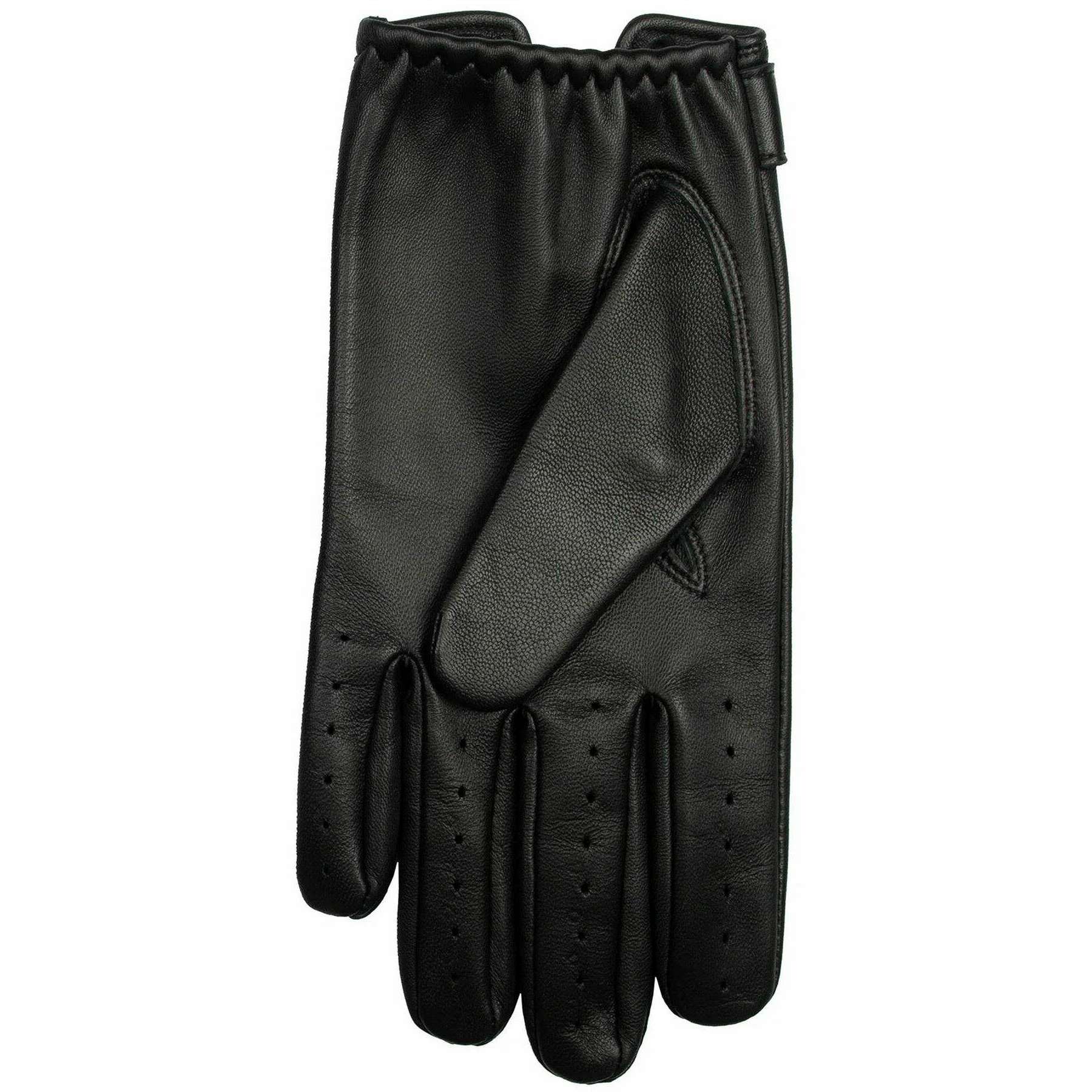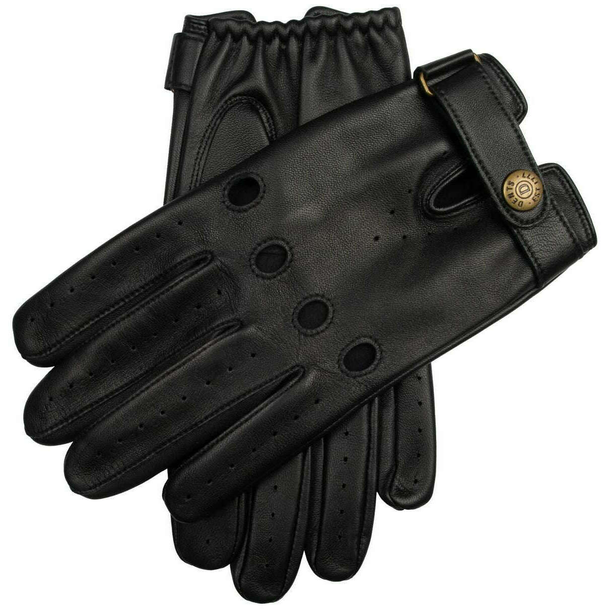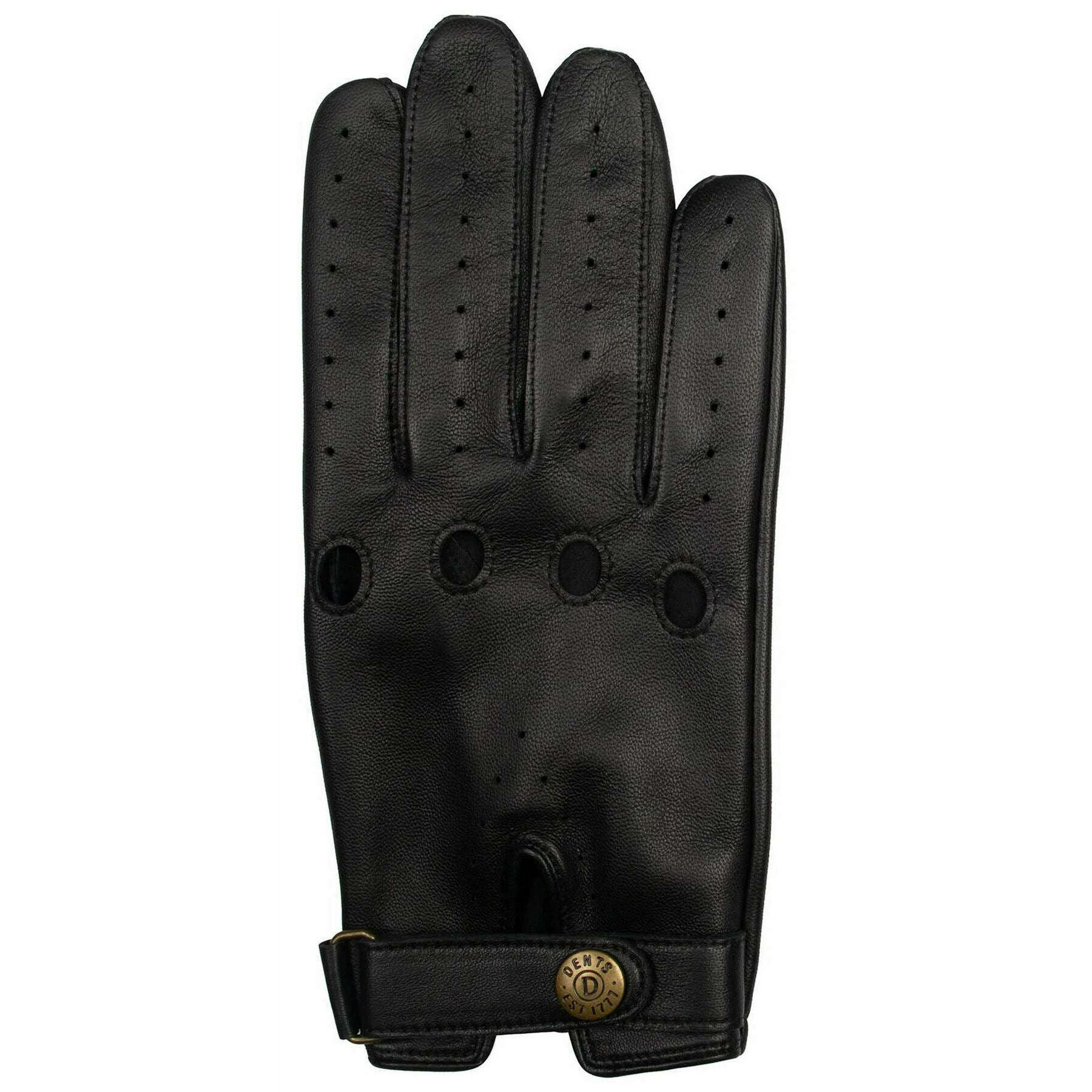 These brooklands leather driving gloves for men are fashioned by the brand Dents in a black colour and are made from 100% hairsheep leather. Also the black gloves are designed in a plain pattern, All the gloves come complete with dents tags. The Dents Brooklands Leather Driving Gloves - Black offer a twist from the usual driving glove as they don t feature the cut-out backs, giving them a unique finish. The gloves feature intricate details such as perforated holes throughout the fingers and palms, knuckle holes and inseam stitching for a clean finish. It has a centre-closing wrist strap with elasticated wrists and Dents fastener stud to give the wearer a secure and comfortable fit.