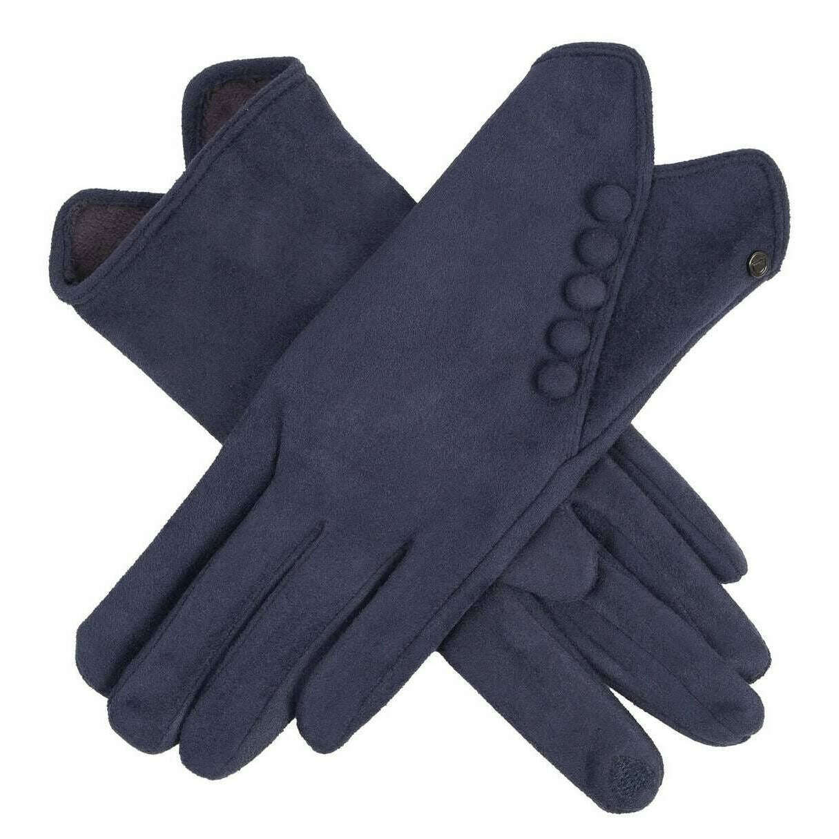 Brought to you by the brand Dents, these navy women's buttoned faux suede gloves are made from 90% polyester and 10% spandex. Also the navy gloves are designed in a plain pattern, It is recommended to hand wash only to keep these gloves in good condition. All the gloves come complete with dents tags. The Dents Buttoned Faux Suede Gloves - Navy are an ideal choice for all winter occasions with their feminine V-shaped cuff and elegant decorative buttons, as well as their striking navy colour. These classy gloves are lined with velour to bring your hands comfort and cosy warmth. Perfect for winter activities and will look beautiful with any outfit.