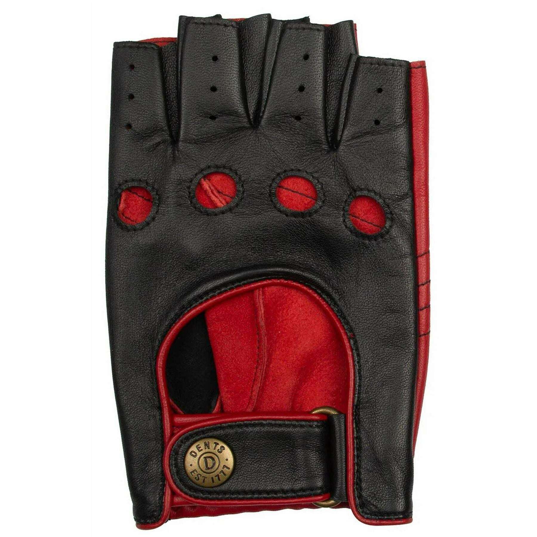 Dents Cadwell Fingerless Two-Colour Leather Driving Gloves - Black/Berry Red