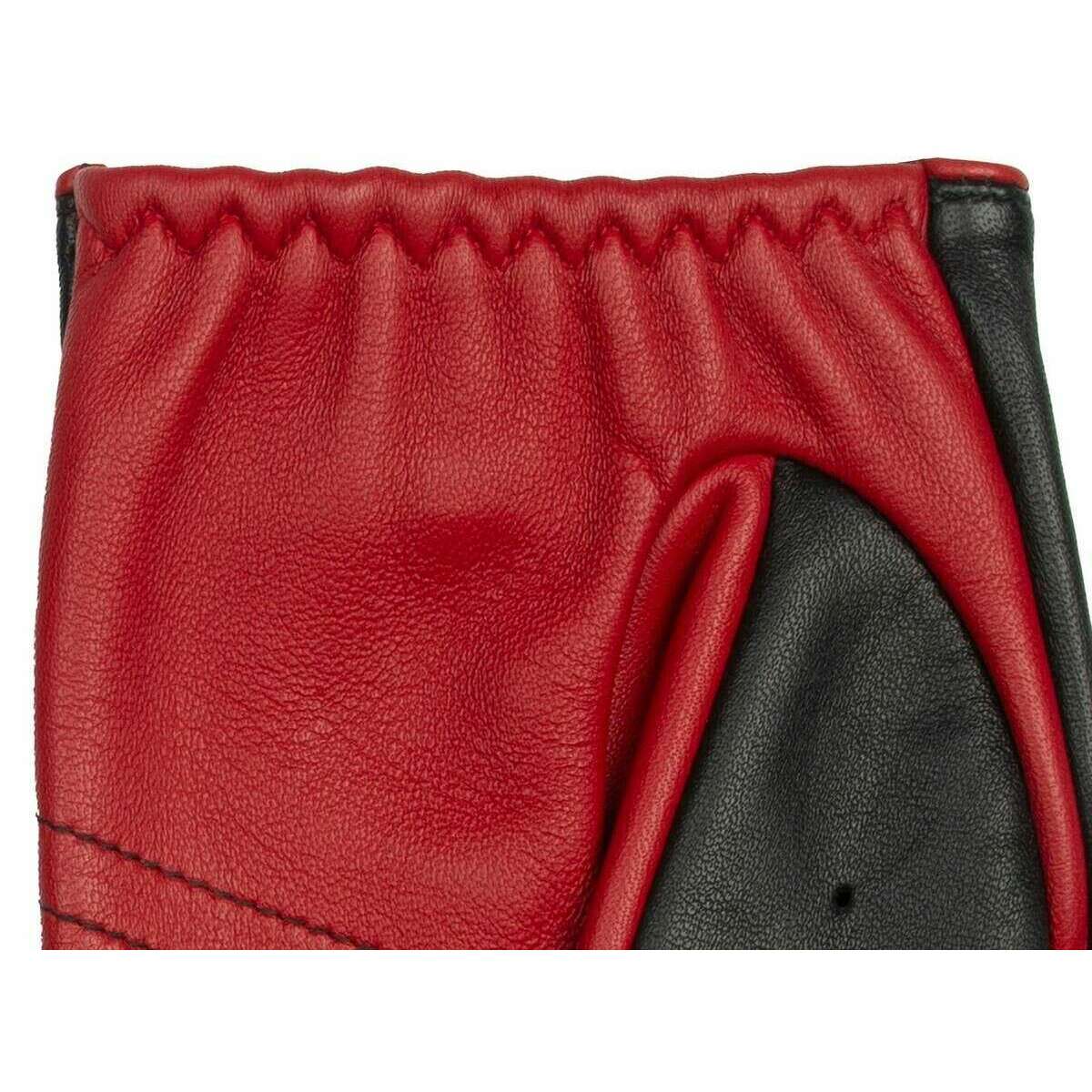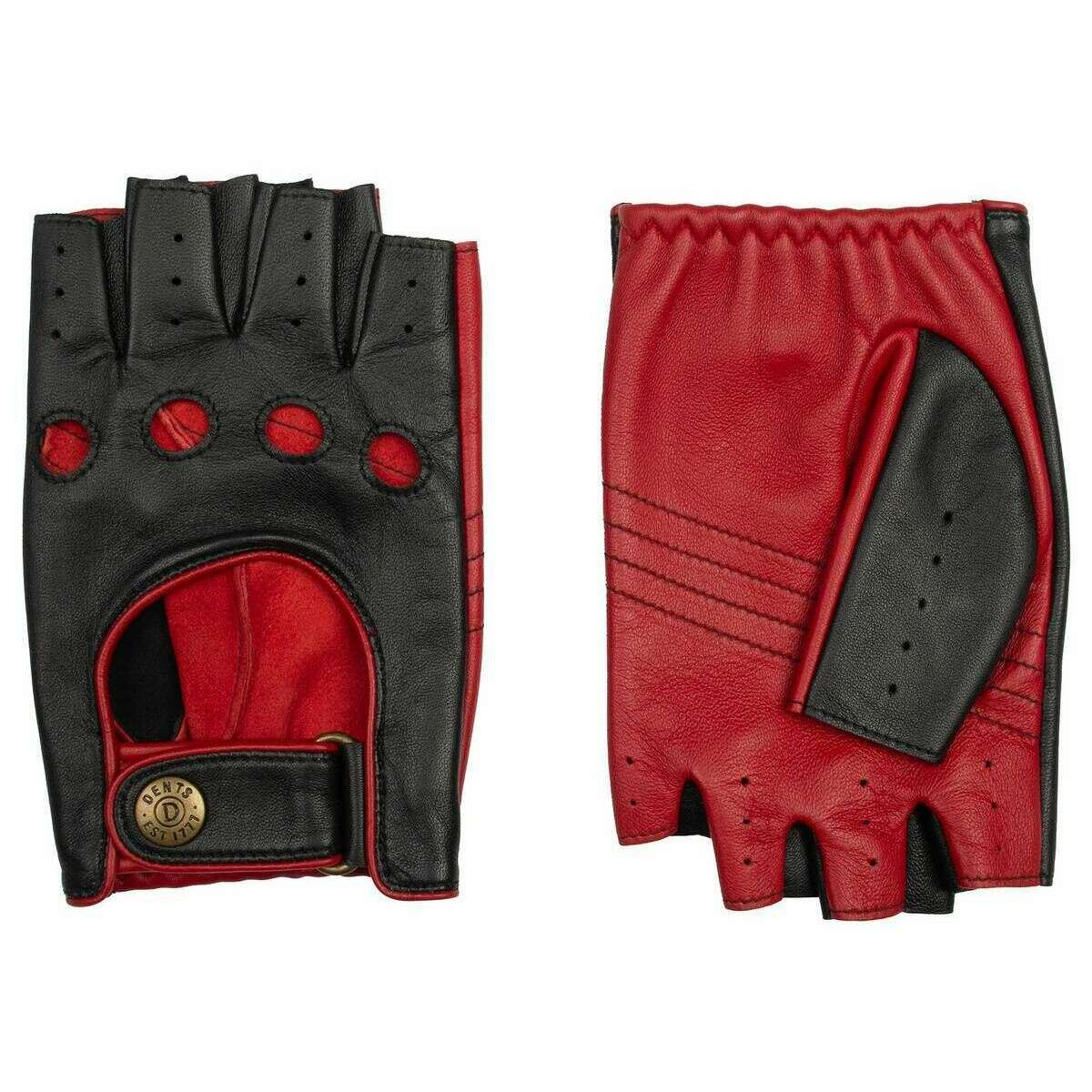These well made men's cadwell fingerless two-colour leather driving gloves from Dents come in a black/berry red colour and are manufactured from 100% hairsheep leather. Also the black/berry red gloves are designed in a 2-tone pattern, All the gloves come complete with dents tags. The Dents Cadwell Fingerless Two-Colour Leather Driving Gloves - Black/Berry Red are perfect for a sleek and stylish look while behind the wheel with the two-tone colouring feature. The unlined design offers a closer fit, while the inseam stitching gives a sleek and clean finish. The elasticated wrists ensure a secure and comfortable wear, while the cut-out backs provide ventilation and flexibility. Drive in style with these chic and practical gloves.