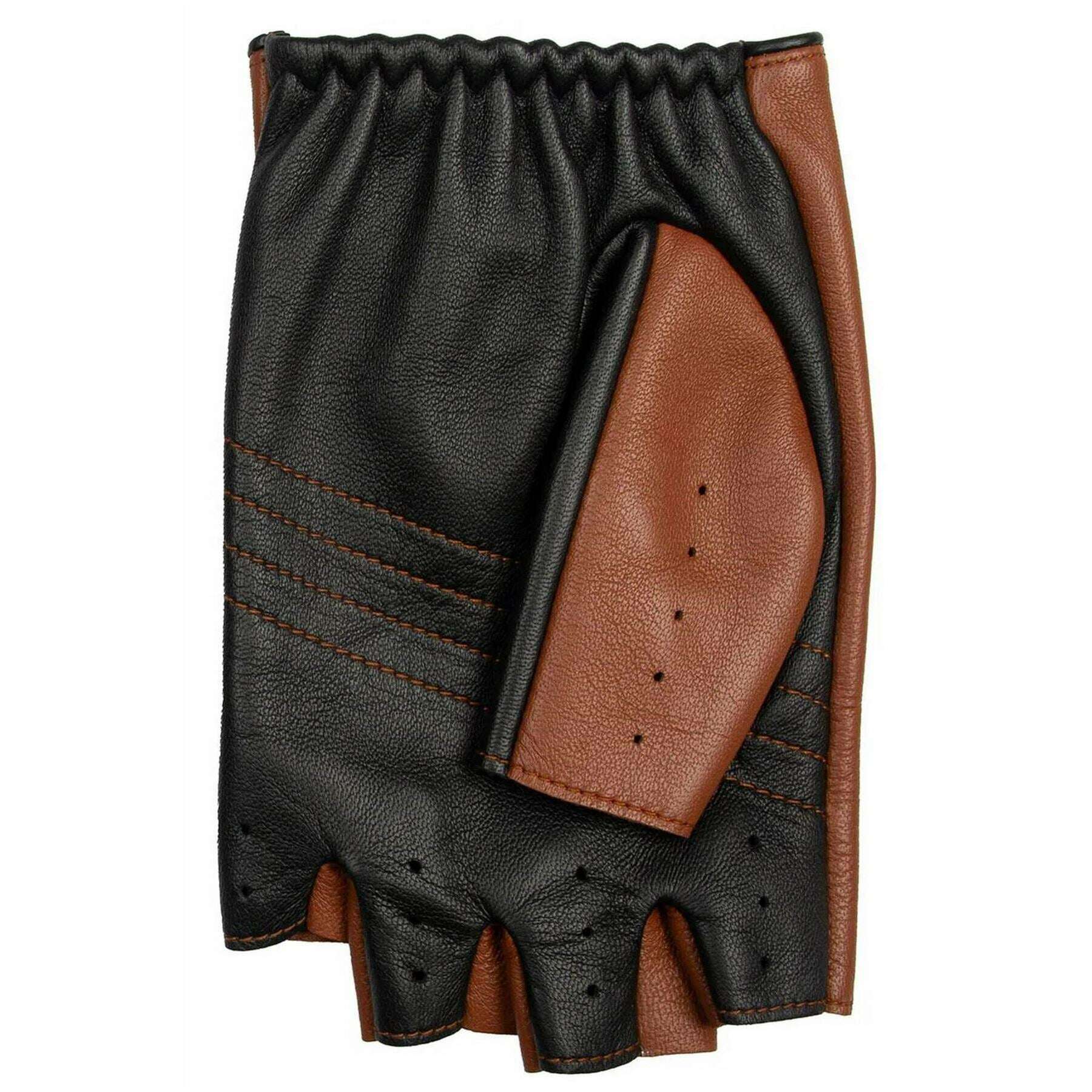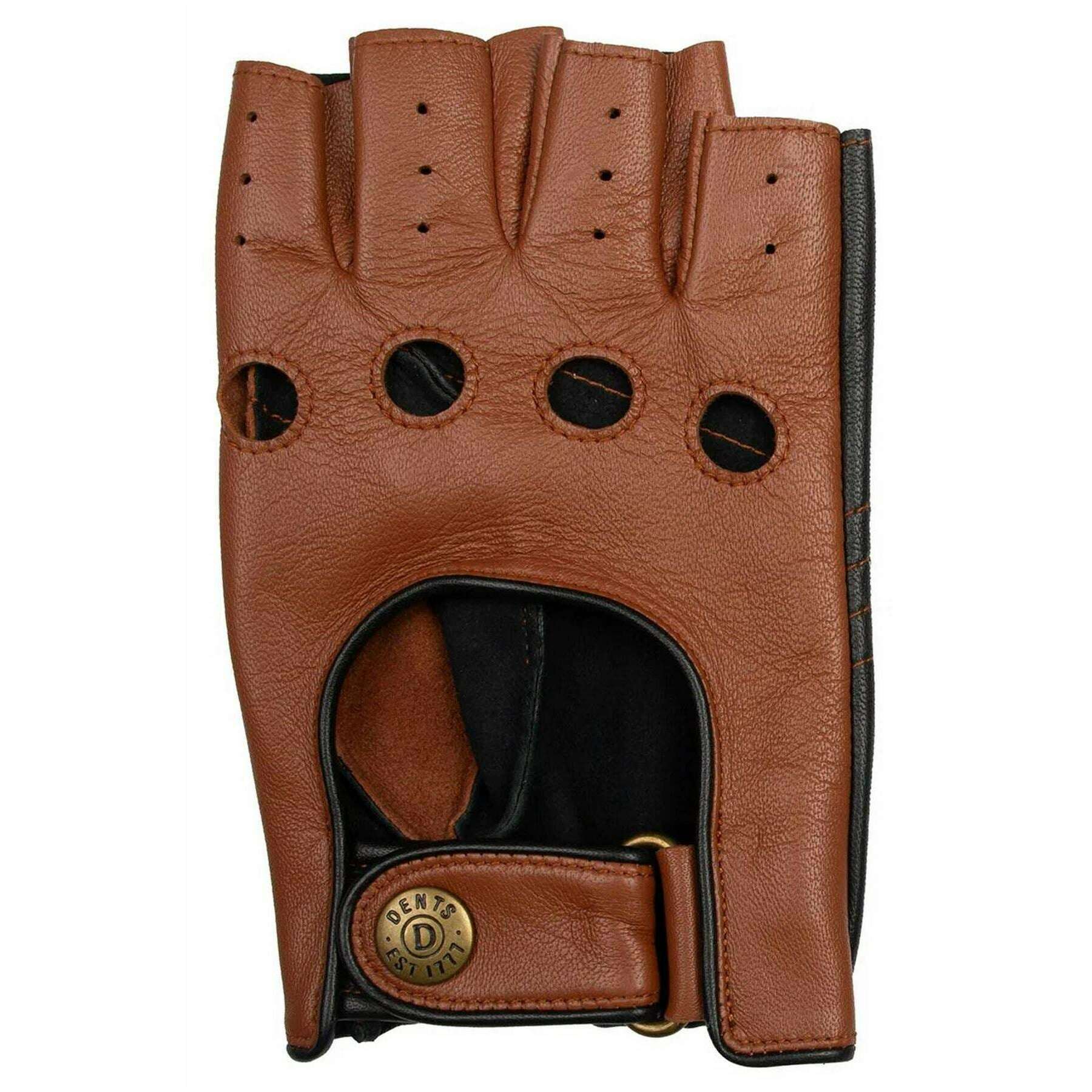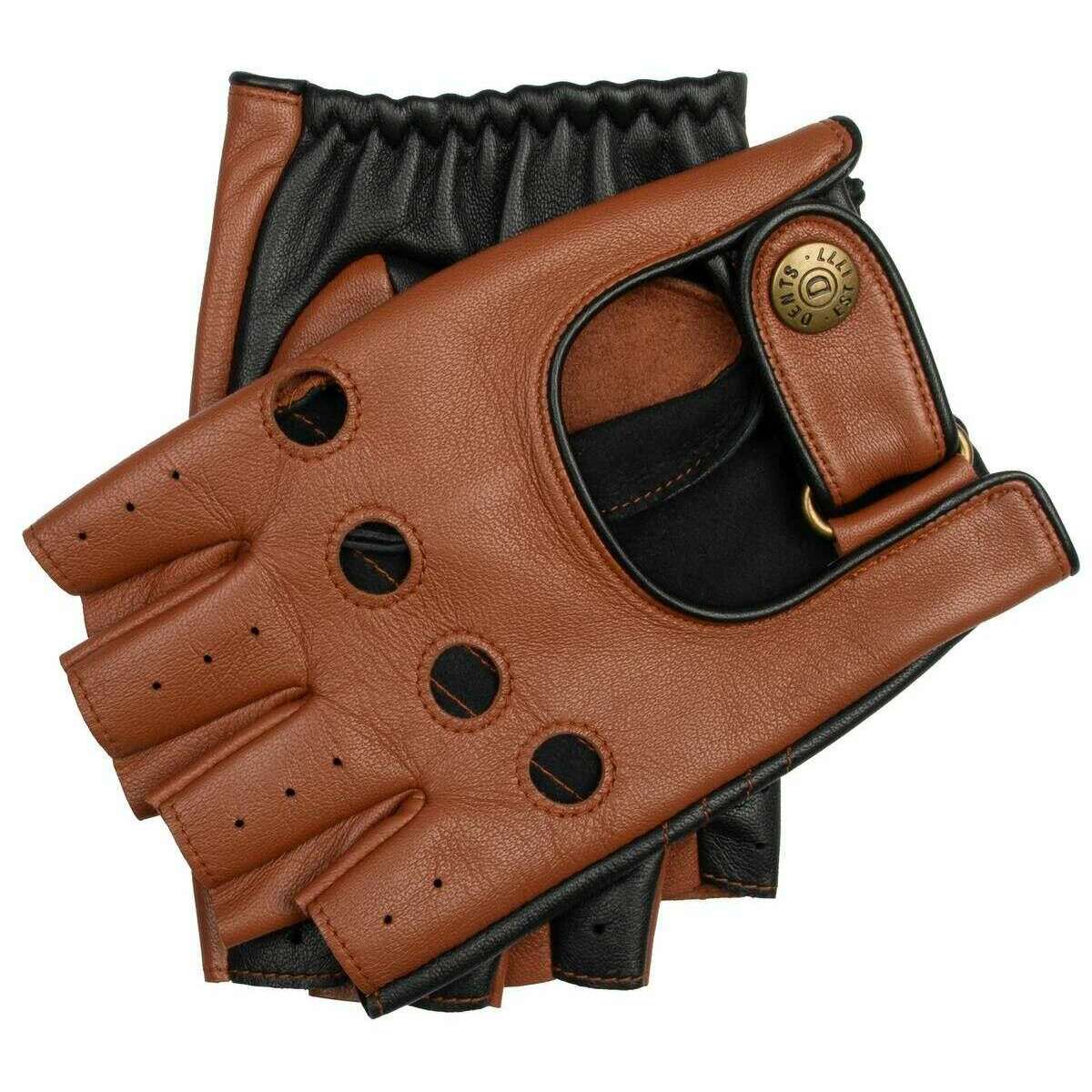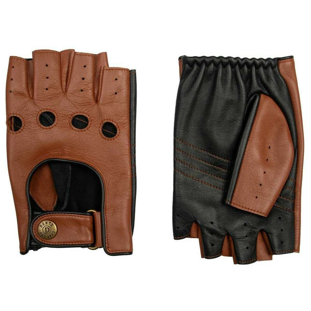 Dents Cadwell Fingerless Two-Colour Leather Driving Gloves - Cognac Brown/Black