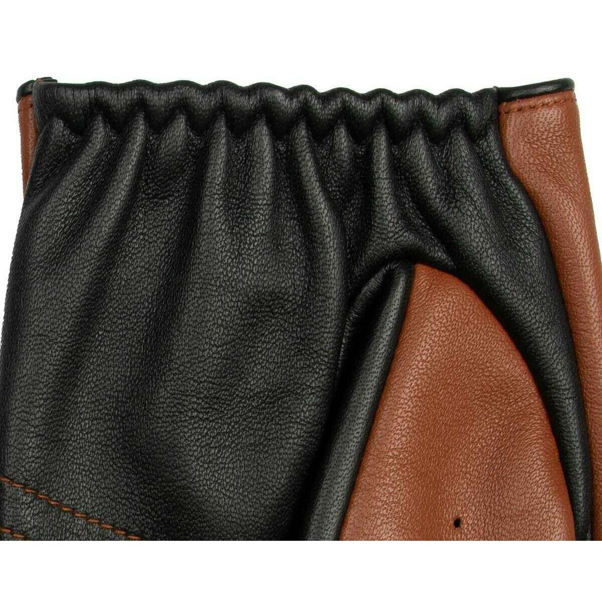 These men's cadwell fingerless two-colour leather driving gloves have been made from 100% hairsheep leather, featured in a brown colour and are from the brand Dents. Also the cognac brown/black gloves are designed in a 2-tone pattern, All the gloves come complete with dents tags. The Dents Cadwell Fingerless Two-Colour Leather Driving Gloves - Cognac Brown/Black are perfect for a sleek and stylish look while behind the wheel with the two-tone colouring feature. The unlined design offers a closer fit, while the inseam stitching gives a sleek and clean finish. The elasticated wrists ensure a secure and comfortable wear, while the cut-out backs provide ventilation and flexibility. Drive in style with these chic and practical gloves.