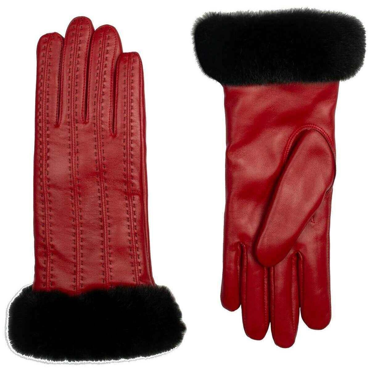 Designer Dents have brought you these women's 100% hairsheep leather and polyester faux fur lining gloves using berry red/black tones. Also the berry red/black gloves are designed in a plain pattern, All the gloves come complete with dents tags. The Dents Cassie Contrast Stitching Leather Gloves - Berry Red/Black are a glamorous choice that will have you looking chic and stylish on your winter outings. The faux fur cuffs give you the luxurious look without the conscious of any animals being used. They are lined with more faux fur, giving your hands a stunning soft and cosy shield against the winter elements. This pair is completed with a decorative vertical stitch design giving a timeless sophisticated appeal.