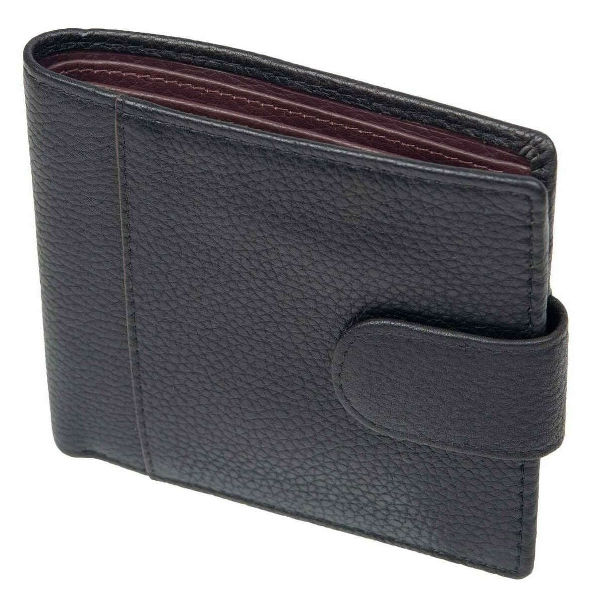 Using black 100% pebble grain leather, this cherwell coin bifold wallet by Dents is perfect for men and a must have. It measures 10cm(height) x 11cm(width). All the wallets come complete with dents tags. The Dents Cherwell Coin Bifold Wallet - Black/Bordeaux Burgundy features four card pockets, two note sections, two slip pockets and a coin pocket, this bifold wallet makes for the perfect gift! The front panel has a tab with an antique brass pressed stud clasp to keep the wallet closed. Lined with poly twill fabric for a smooth and graceful look this stylish accessory has a casual elegance about it.
