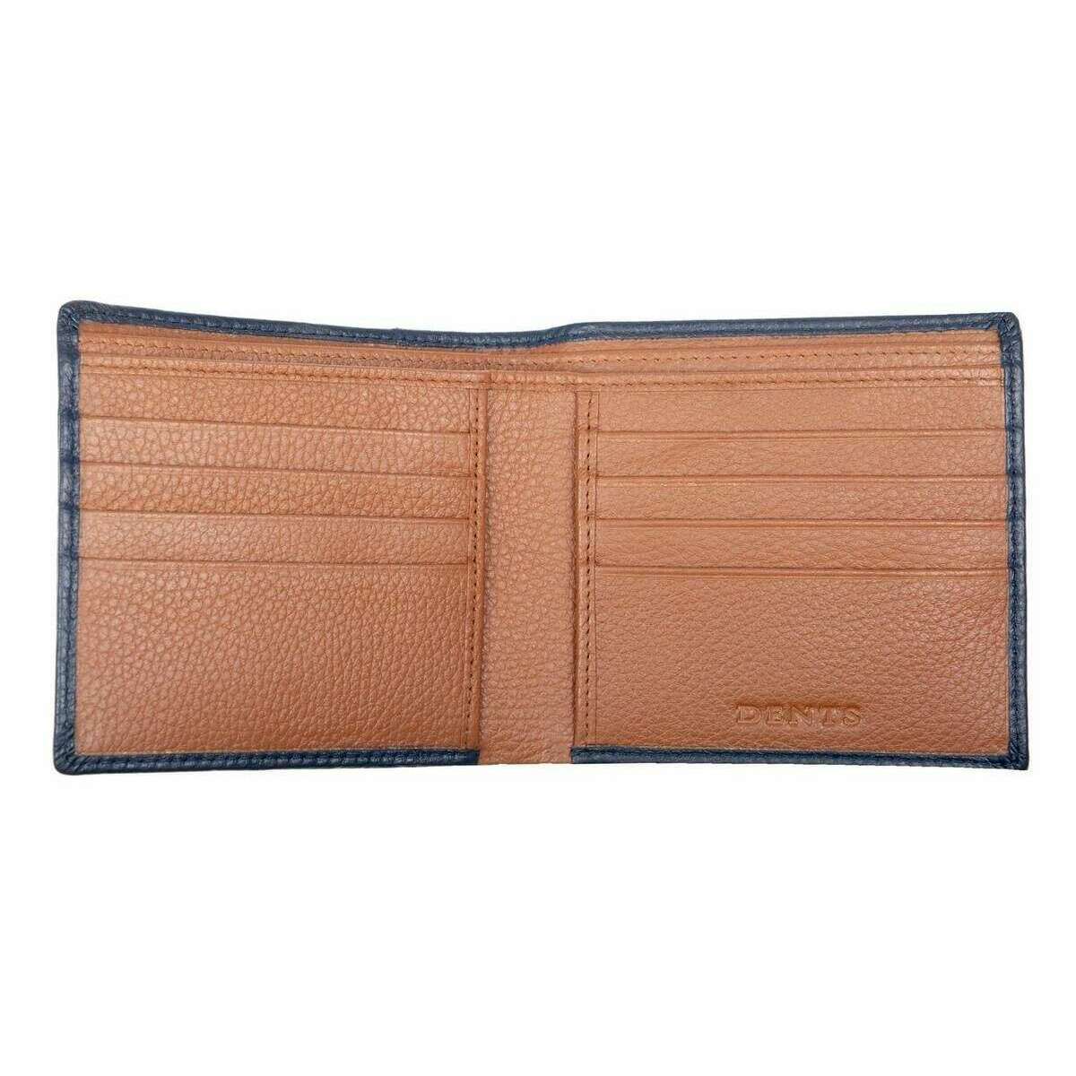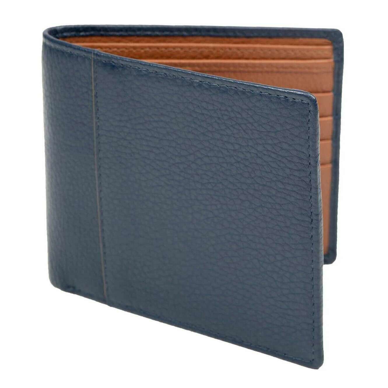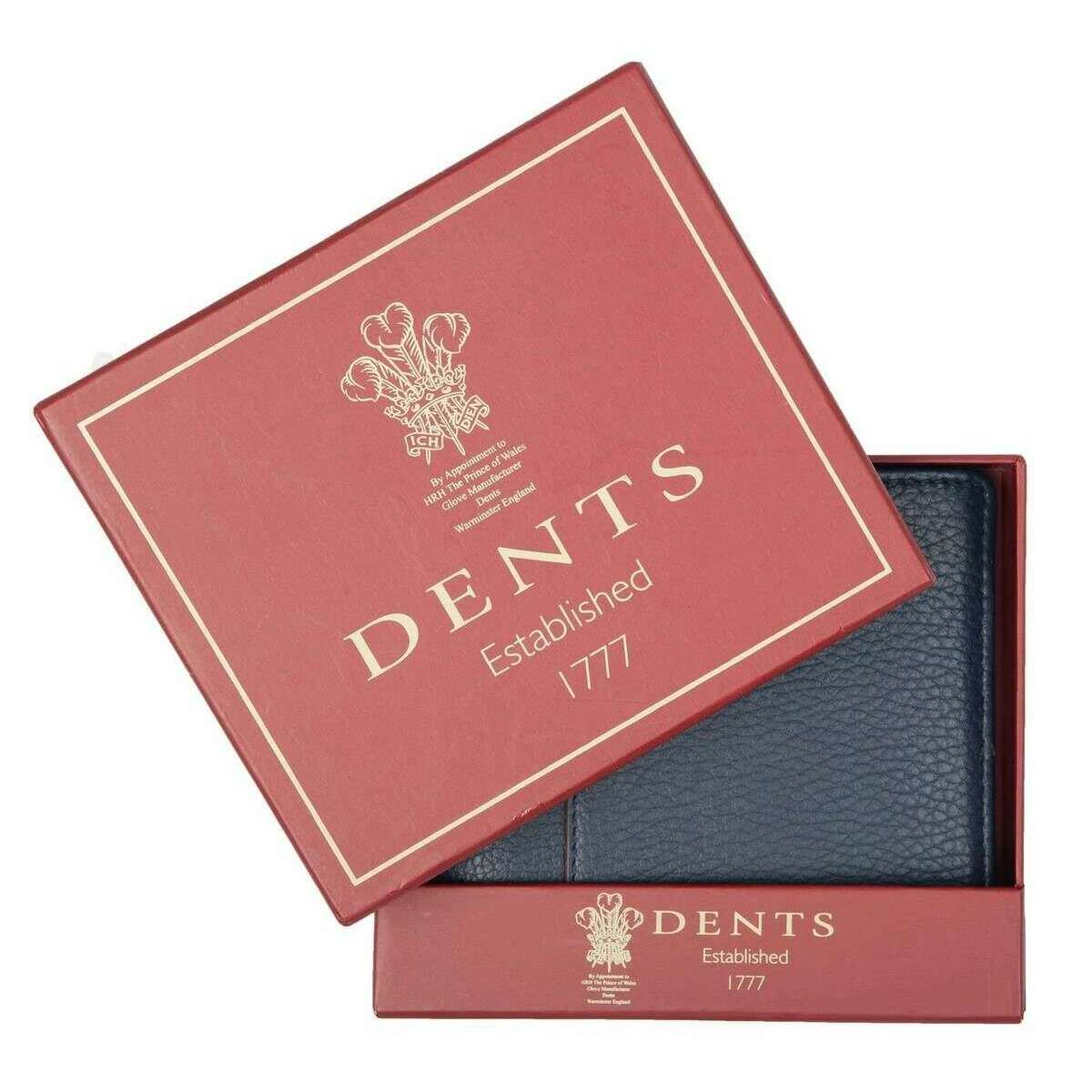 This men's cherwell slim bifold wallet by the brand Dents is made from 100% pebble grain leather and is showcased in navy. It measures 10cm(height) x 11cm(width). All the wallets come complete with dents tags. The Dents Cherwell Slim Bifold Wallet - Navy/Cognac Brown features eight card pockets, two note sections and two slip pockets this bifold wallet makes for the perfect gift! The inside panel has the embossed Dents logo giving the wallet a sophisticated look. Lined with poly twill fabric for a smooth and graceful look this stylish accessory has a casual elegance about it.