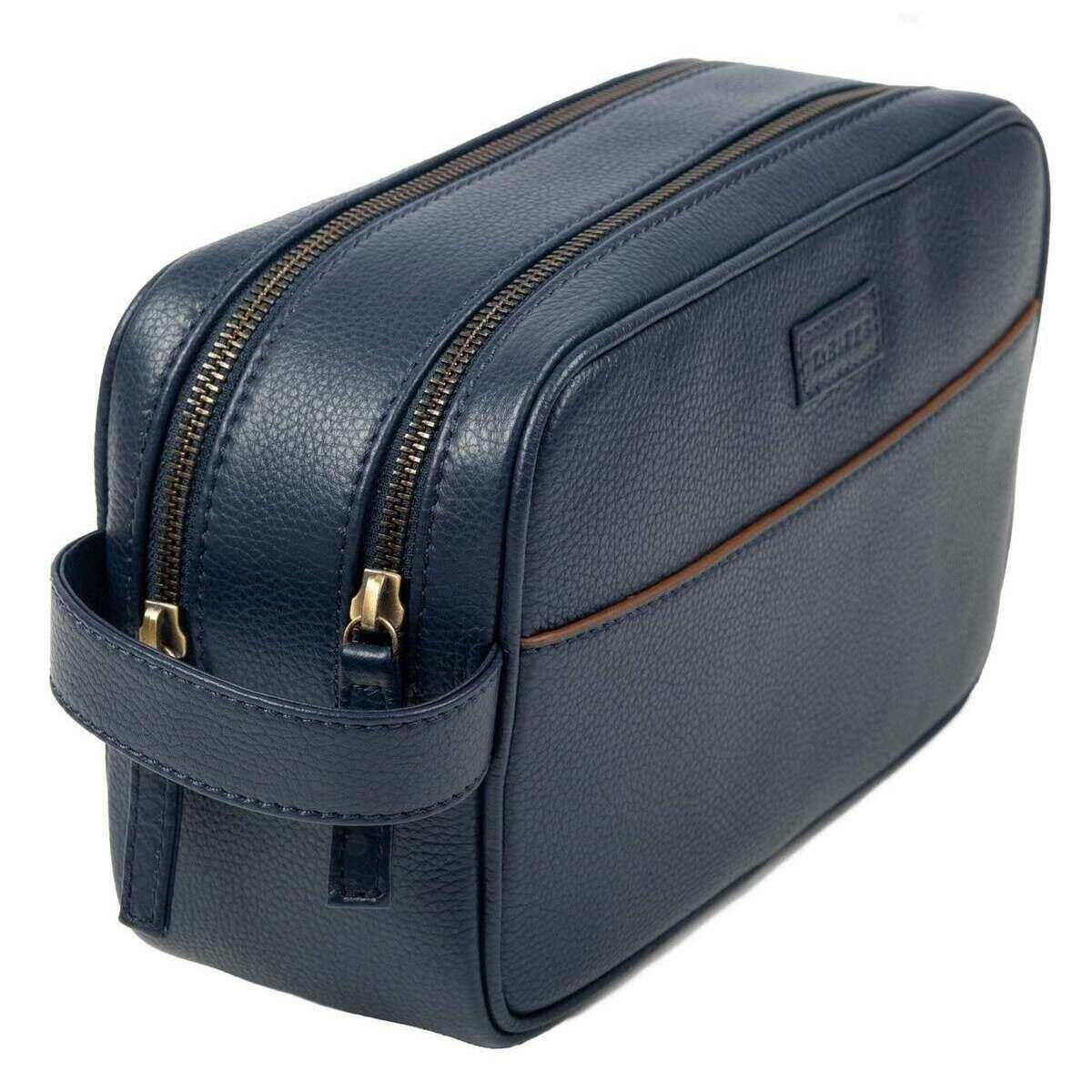 Dents Cherwell Wash Bag - Navy/Cognac Brown