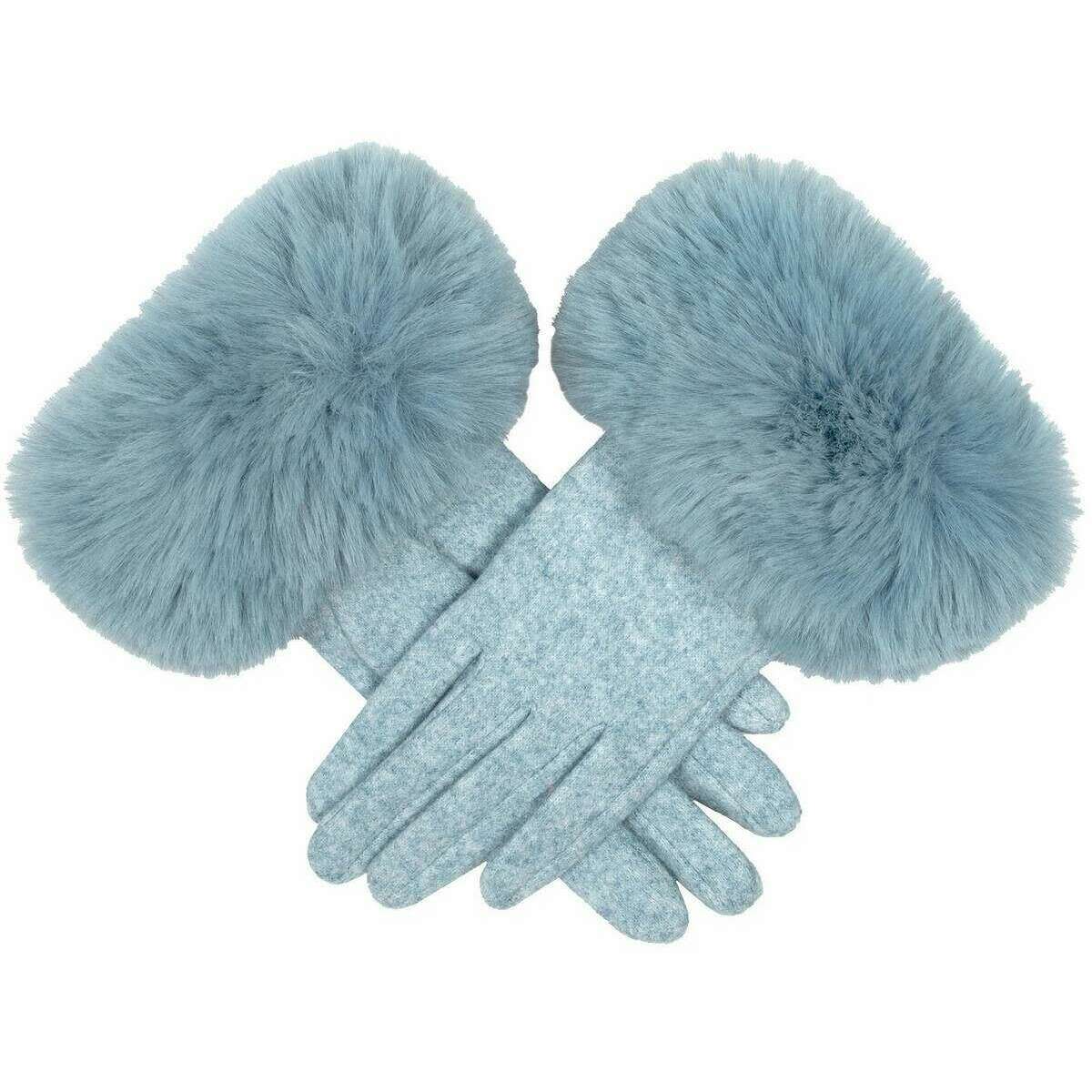 Perfect for women are these Dents pale blue faux cuff gloves, they are also made from 90% polyester and 10% spandex. Also the pale blue gloves are designed in a plain pattern, It is recommended to hand wash only to keep these gloves in good condition. All the gloves come complete in dents packaging. The Dents Faux Cuff Gloves - Pale Blue are a glamorous choice that will have you looking chic and stylish on your winter outings. The faux fur cuffs give you the luxurious look without the conscious of any animals being used. They are lined with velour, giving your hands a stunning soft and cosy shield against the winter elements. If that isn’t enough, the index finger and thumb features touchscreen technology so you can use your devices without having to remove your gloves.