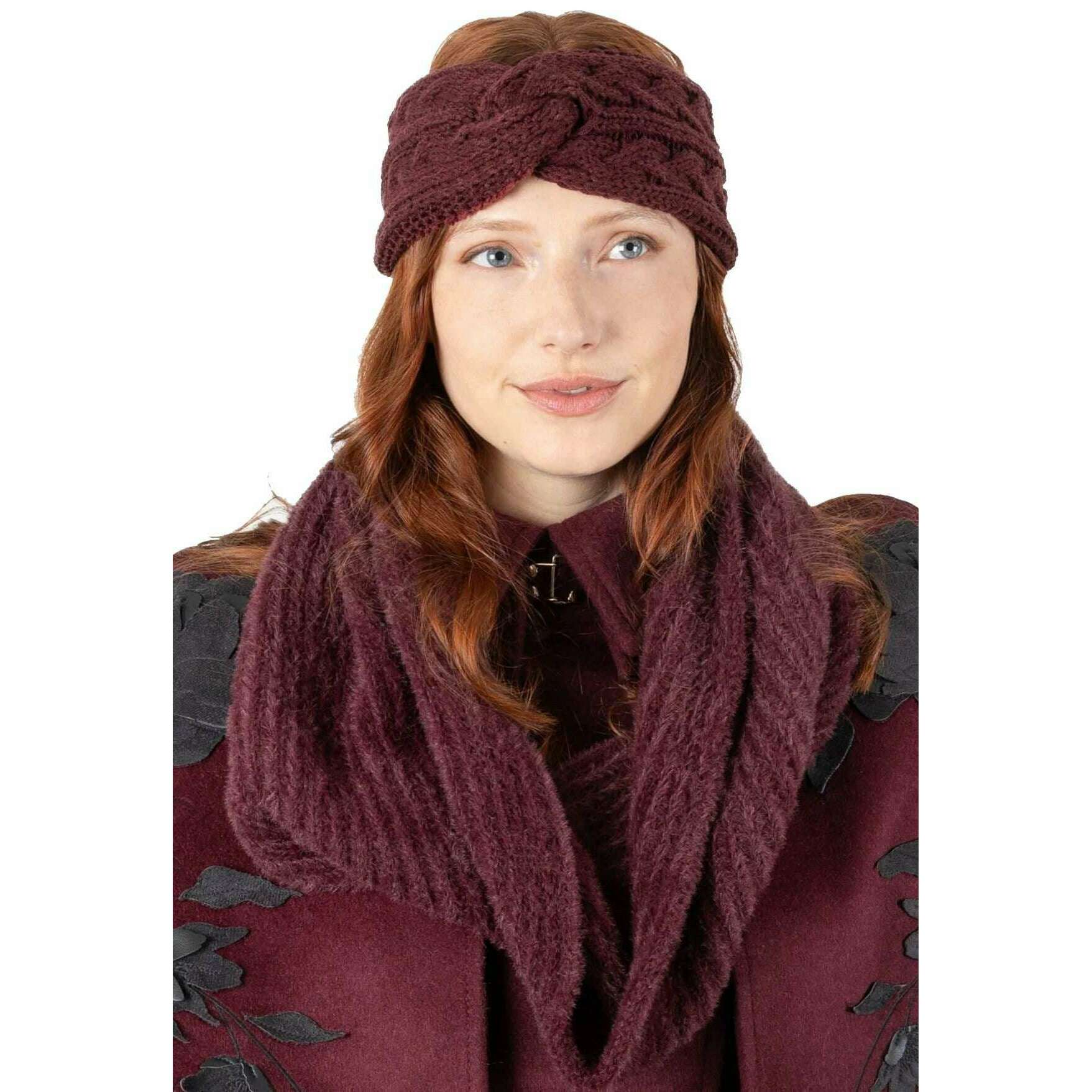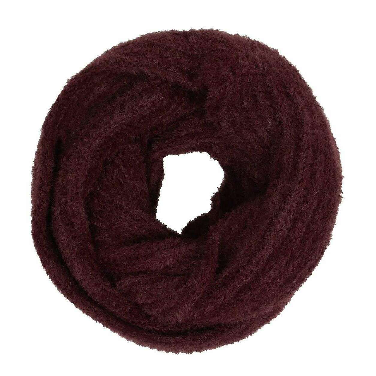 Dents Feather Yarn Knitted Snood - Damson Burgundy