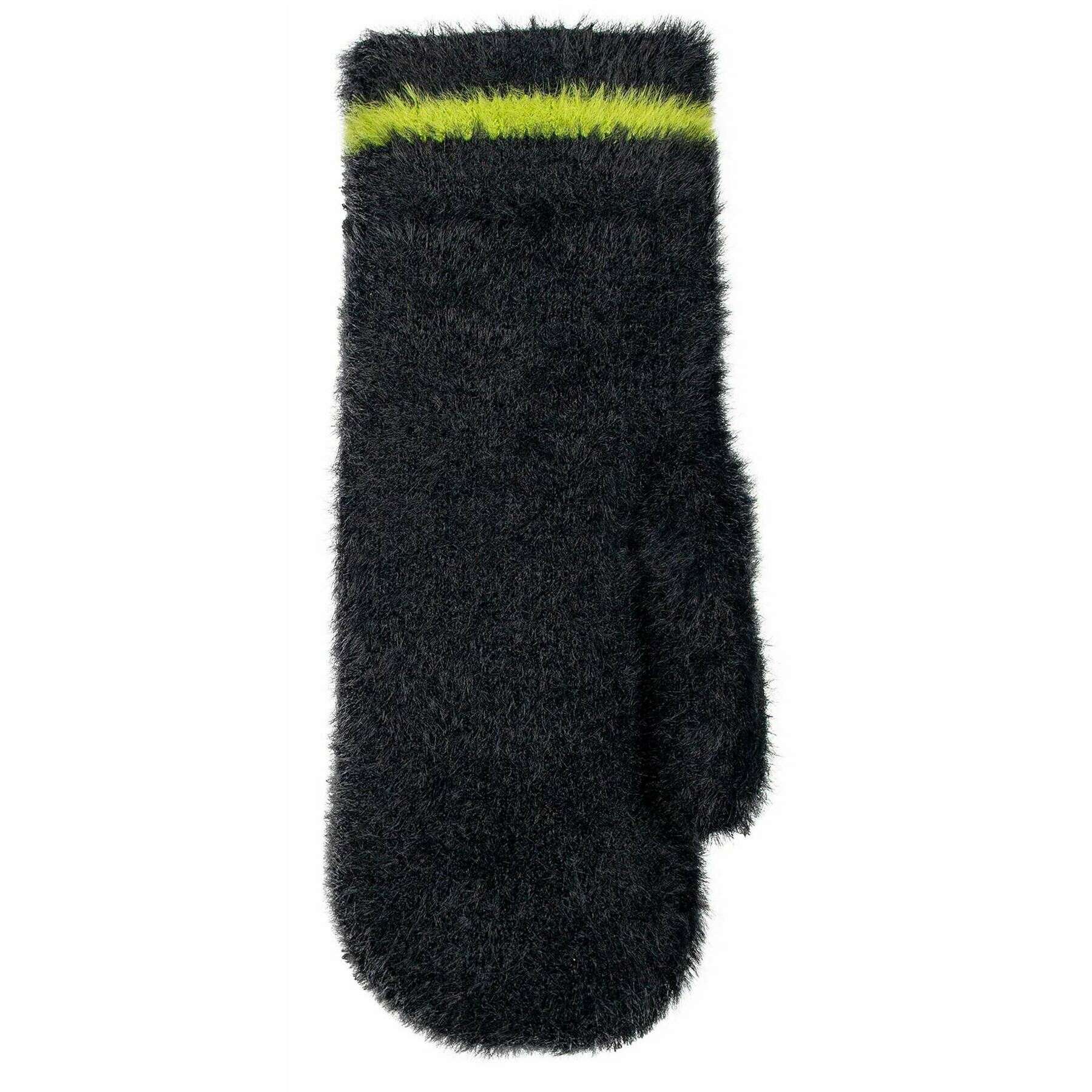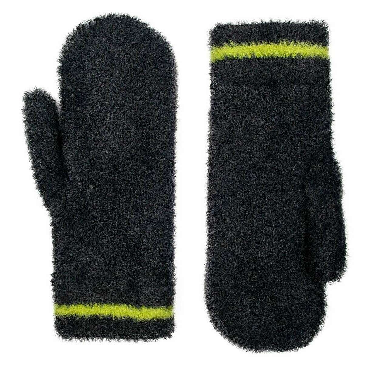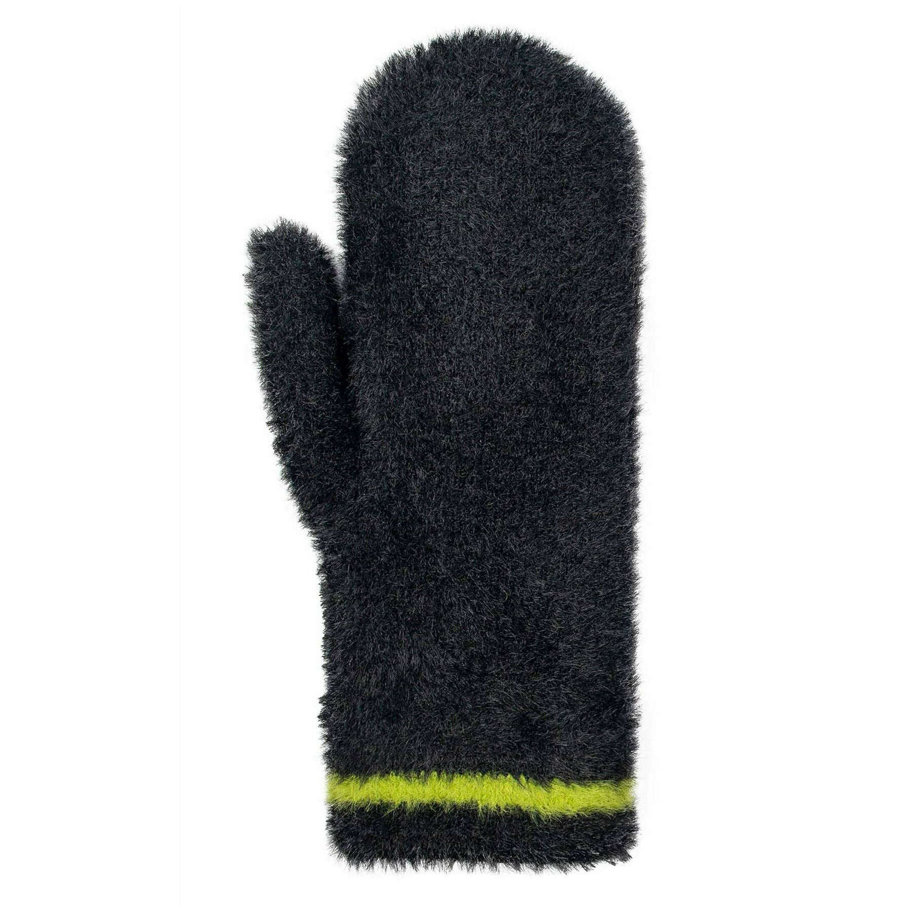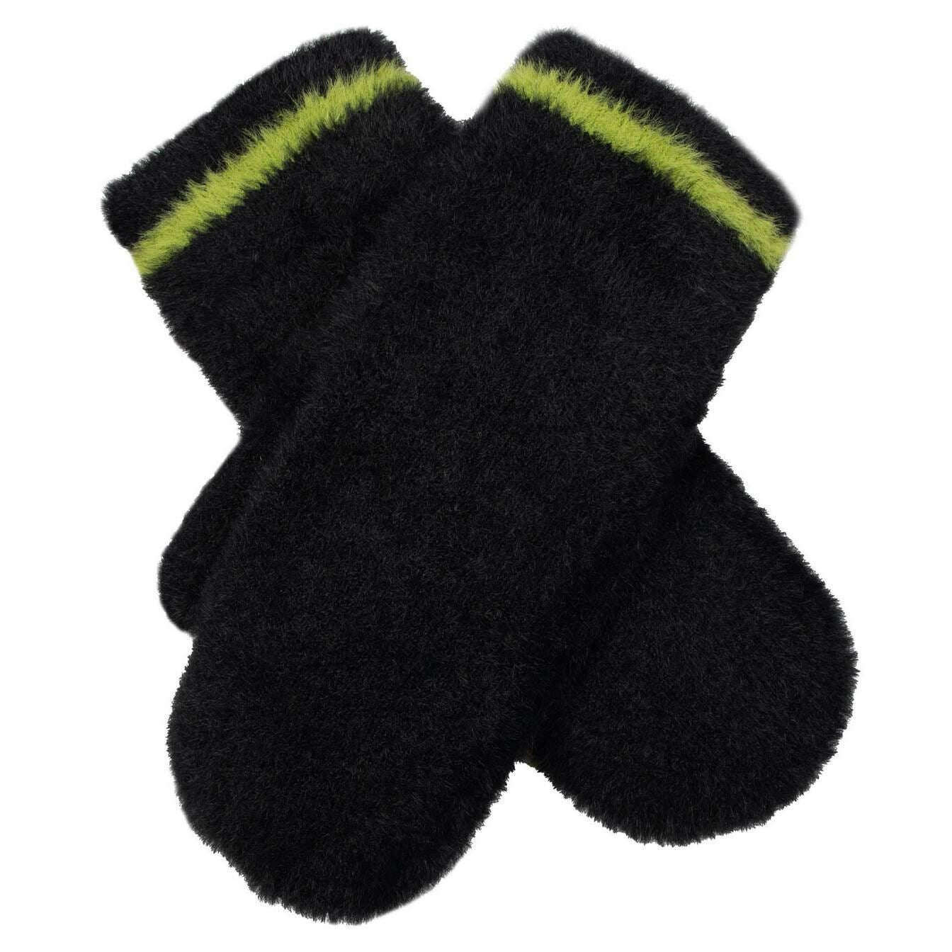 Dents Feather Yarn Mittens - Black/Green