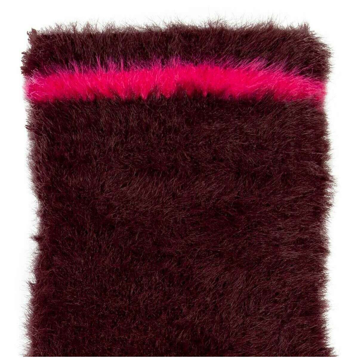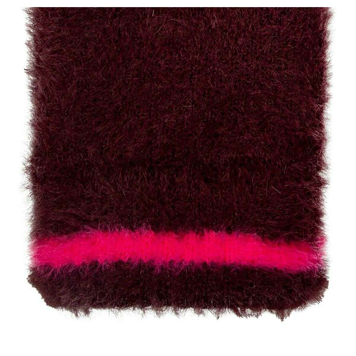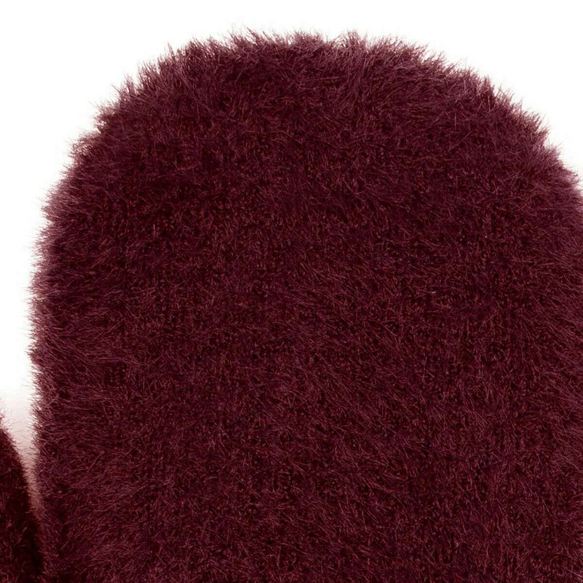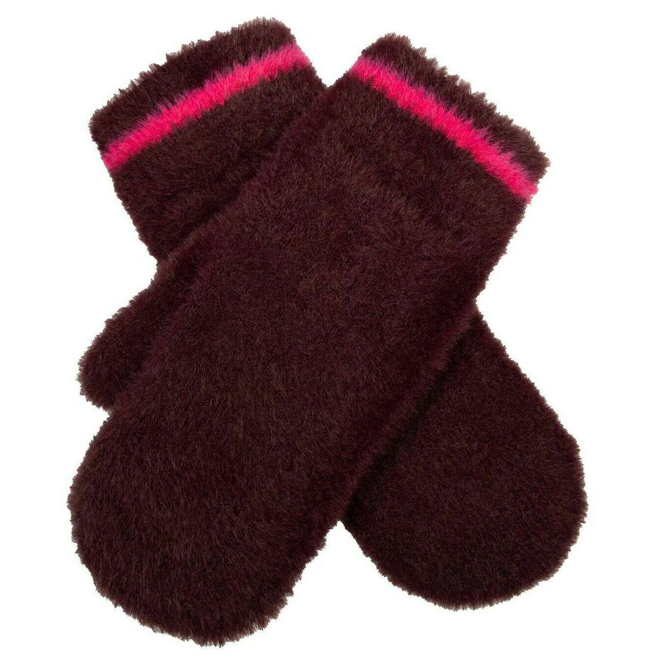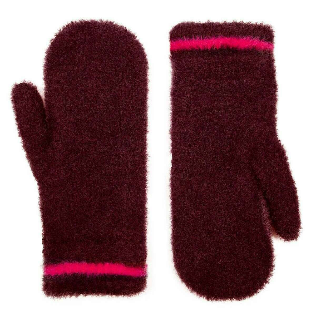 Dents Feather Yarn Mittens - Burgundy/Pink