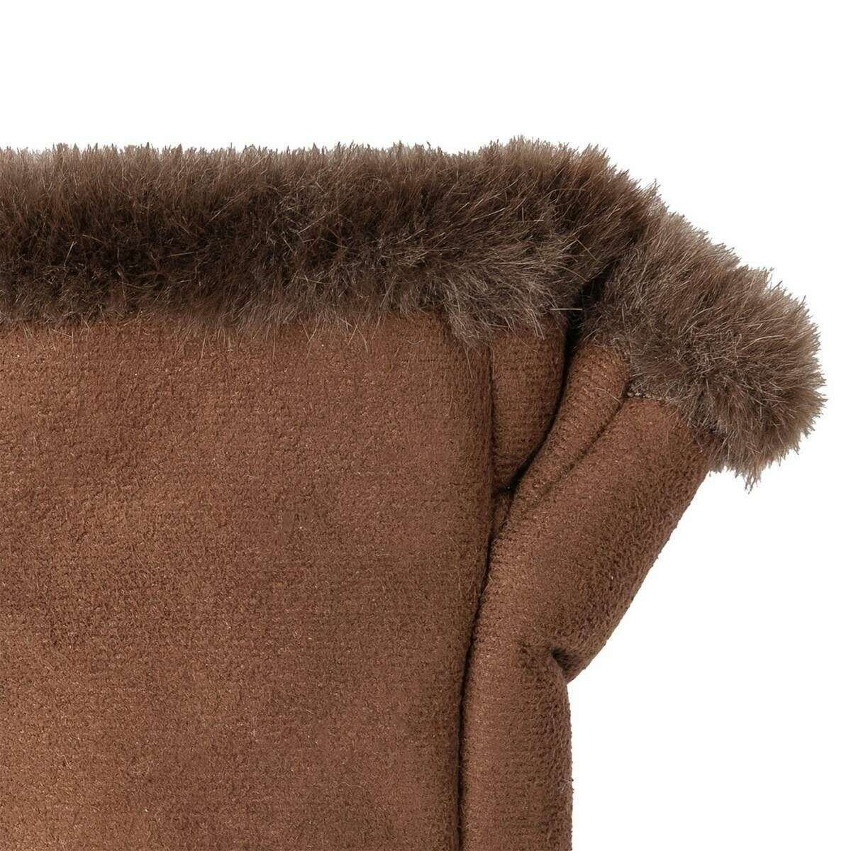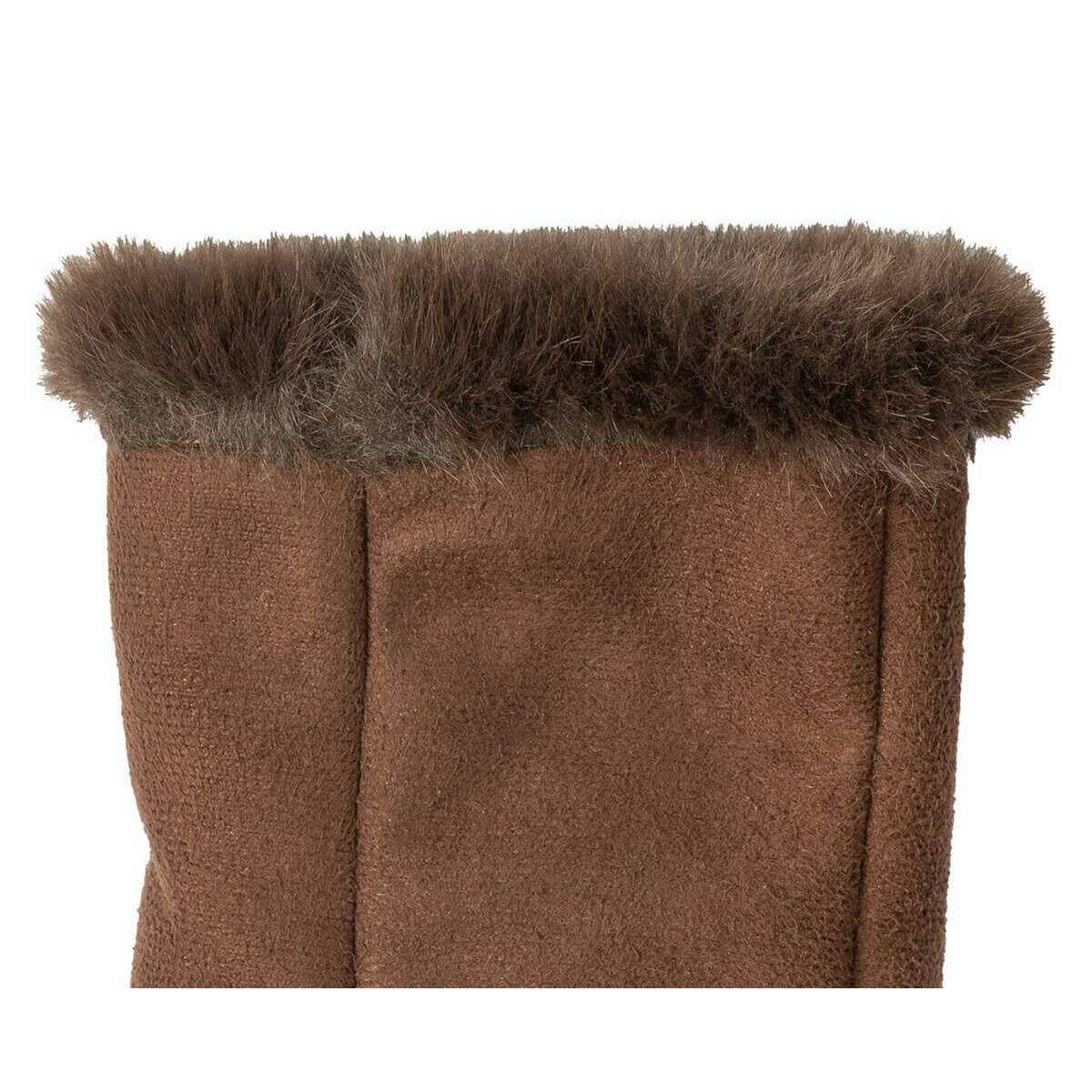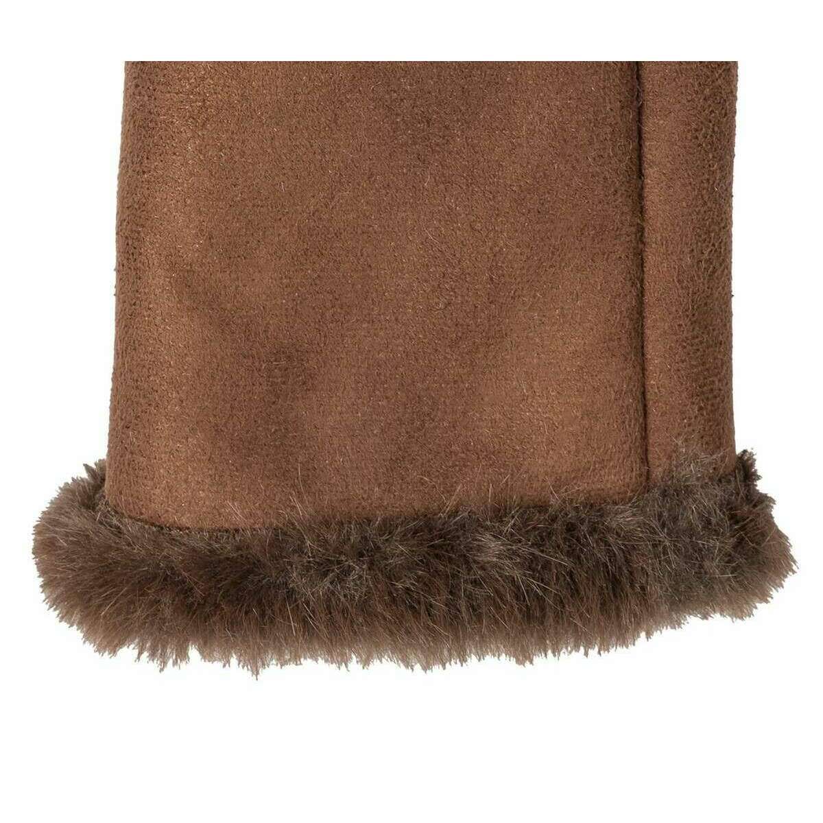 Manufactured from 100% polyester are these chocolate brown women's fingerless faux suede mittens by the designer Dents. Also the chocolate brown gloves are designed in a plain pattern, It is recommended to hand wash only to keep these gloves in good condition. All the gloves come complete with dents tags. The Dents Fingerless Faux Suede Mittens - Chocolate Brown feature a turned back cuff and top showing off the fluffy chocolate brown colour inside and high-quality material. These fluffy and comfortable gloves are perfect for everyday wear, especially in autumn and winter. Guaranteed to keep your hands warm whilst allowing full flexibility with their fingerless design.