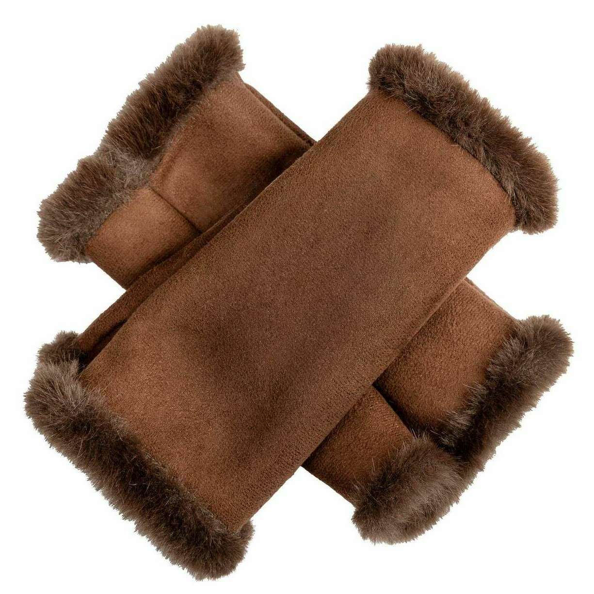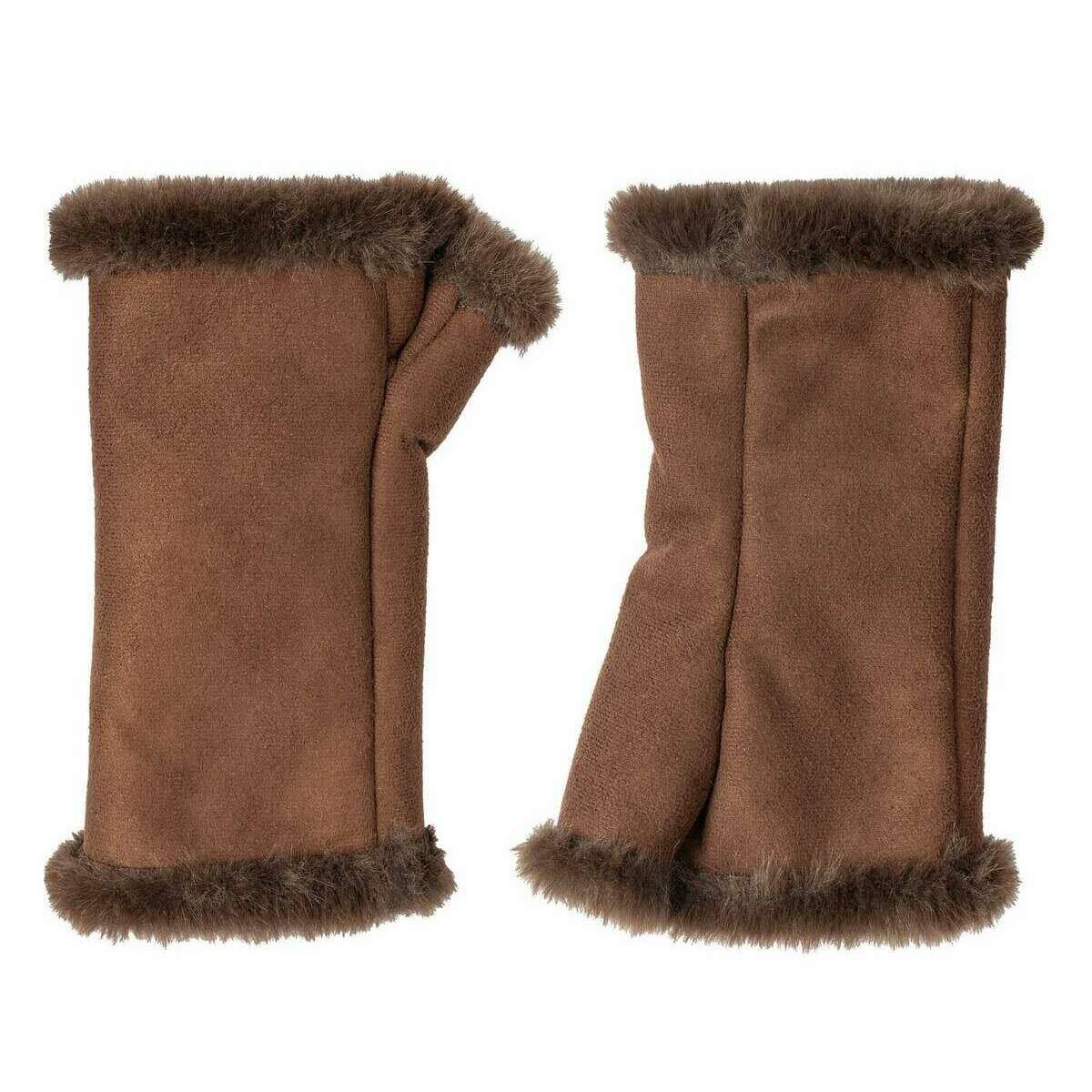 Dents Fingerless Faux Suede Mittens - Chocolate Brown