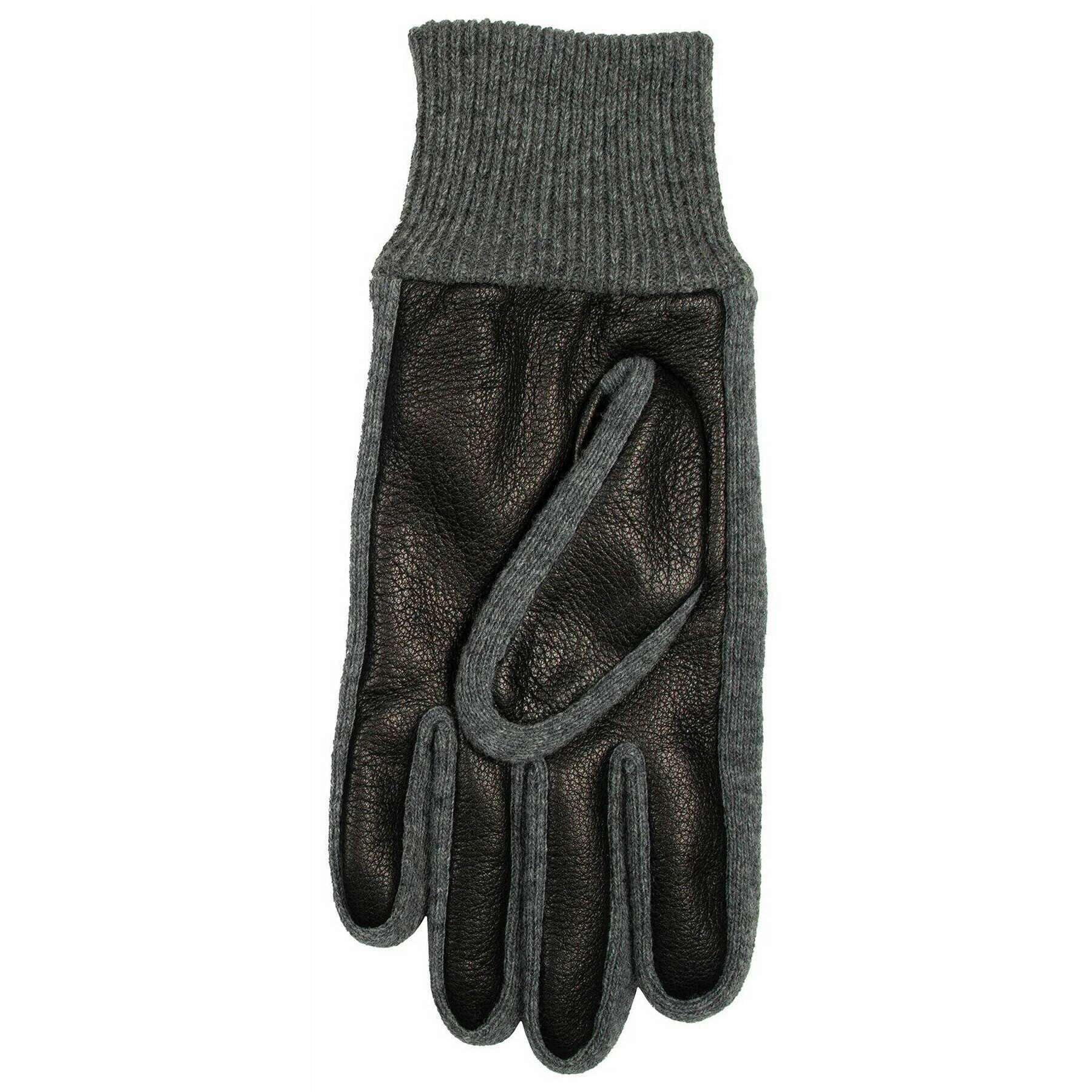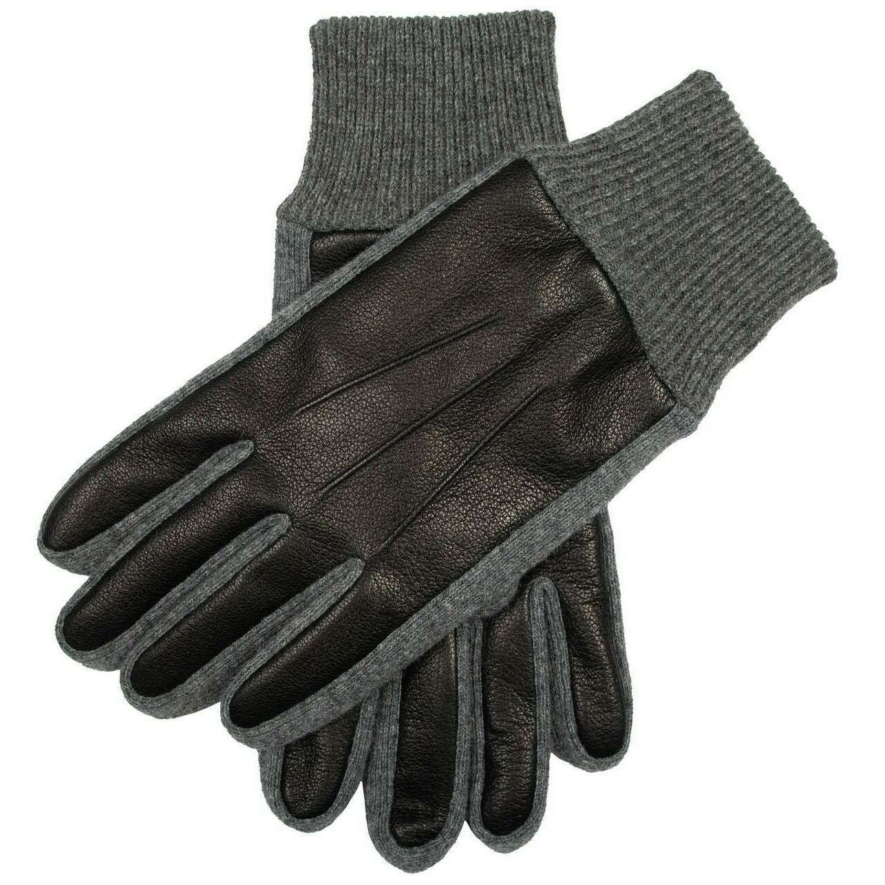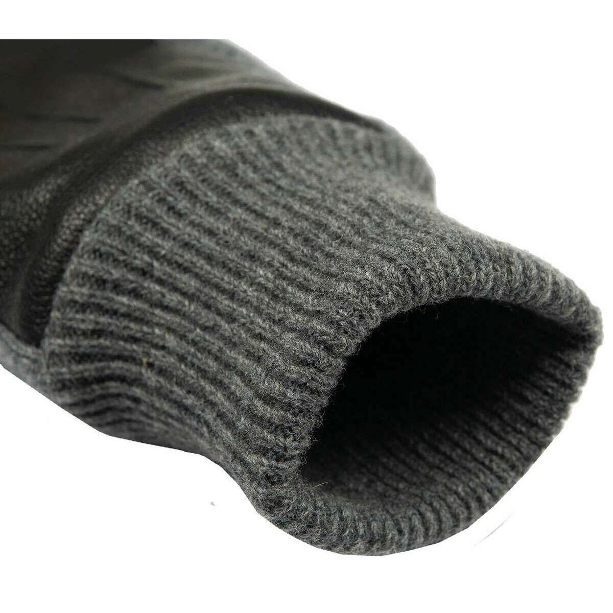 These harrogate knitted cuff leather gloves for men are fashioned by the brand Dents in a black colour and are made from outer: deerprint hairsheep leather, lining: 100% polyester fleece. Also the black gloves are designed in a 2-tone pattern, All the gloves come complete with dents tags. The Dents Harrogate Knitted Cuff Leather Gloves - Black combine luxury with an everyday look due to the premium leather and knitwear. Featuring three-point decorative stitching enhances this pair by giving an elongated refined touch and the fleece lining paired with the ribbed knitted cuffs ensures optimal comfort keeping the warmth in and the cold out. Finishing off this pair is the inseam stitching giving a sleek and clean look.