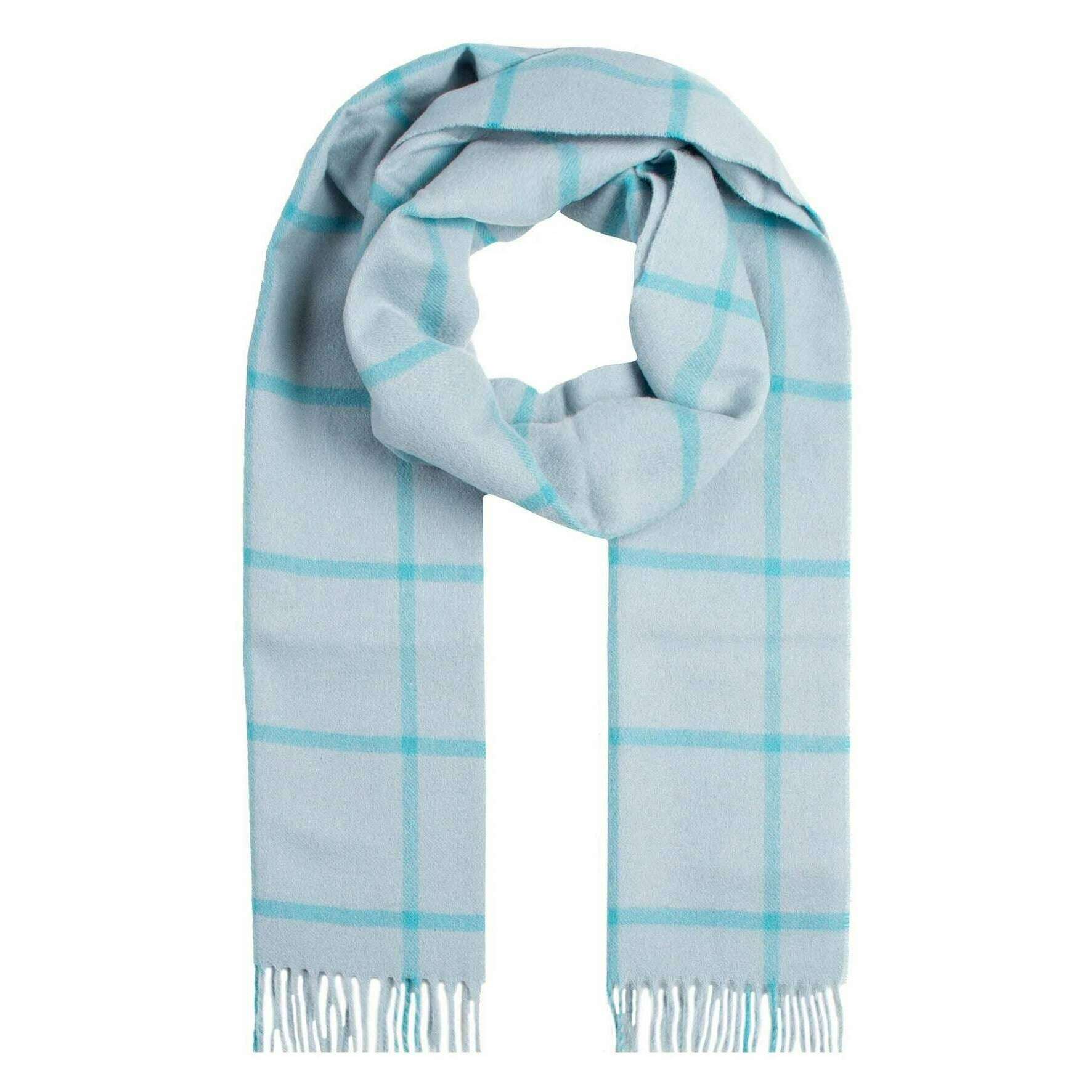 Brought to you by the brand Dents, this duck egg blue women's heritage plaid check cashmere scarf is made from 100% cashmere. It measures 180cm(height) x 25cm(width). Also the duck egg blue scarf is designed in a checked pattern, It is recommended to hand wash only to keep this scarf in good condition. All the scarves come complete with dents gift box. The Dents Heritage Plaid Check Cashmere Scarf - Duck Egg Blue features vibrant shades of pale blues and dark blues. This scarf is classy and bold, perfect for everyday wear. Also includes classic tassels for an added touch.
