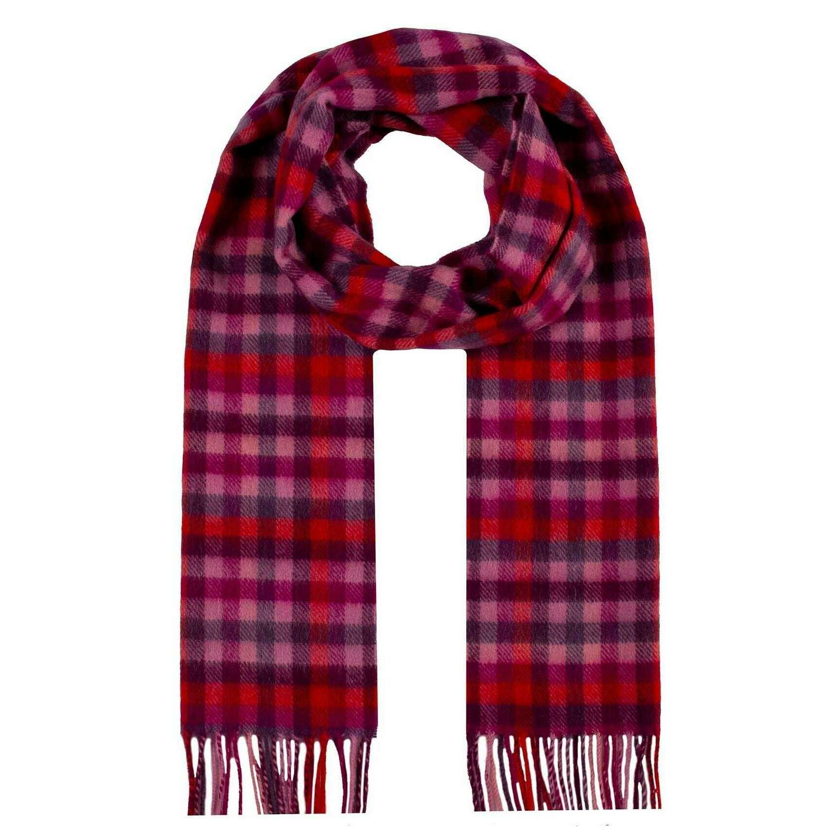 Dents Heritage Plaid Check Cashmere Scarf - Scarlet Red/Purple