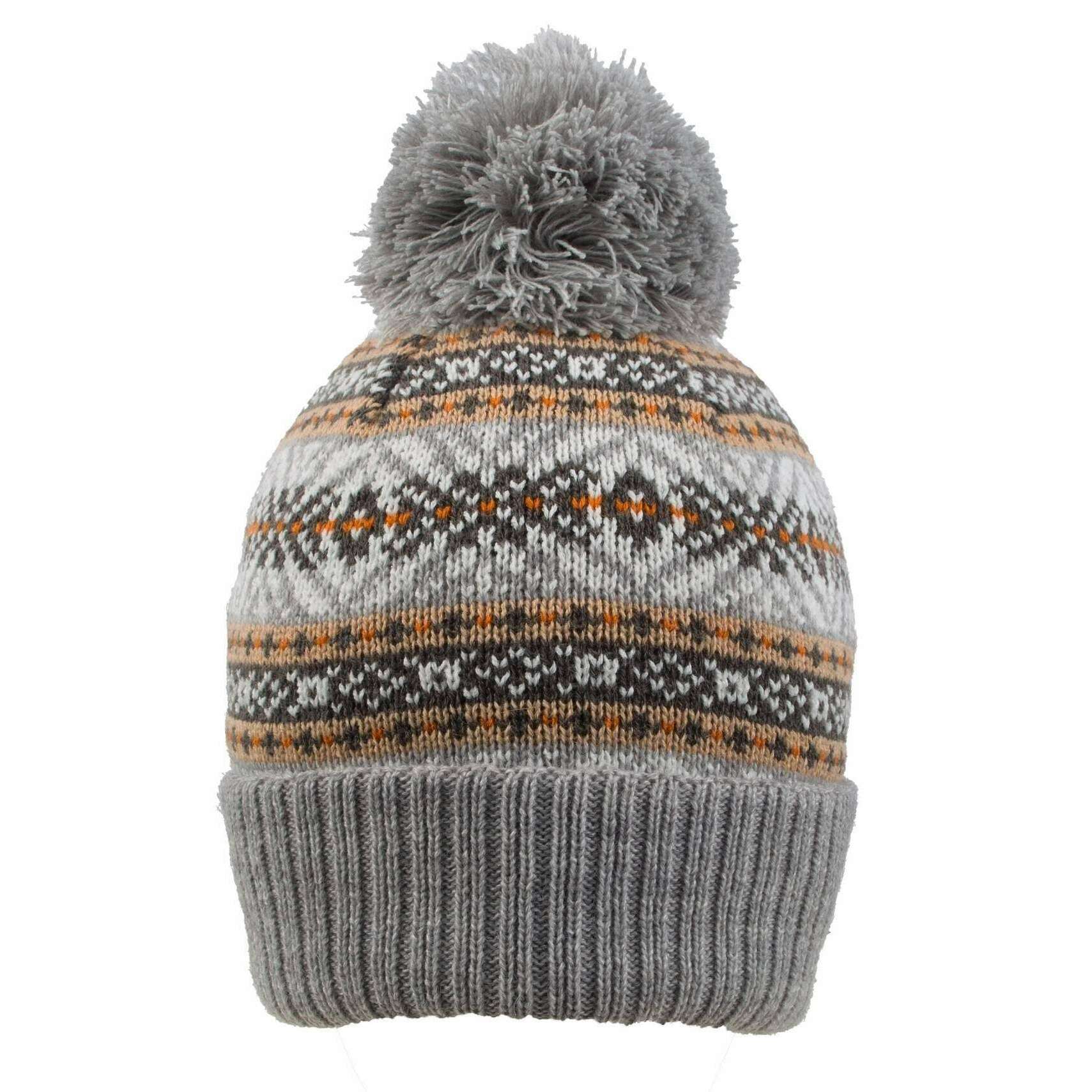 Dents Jacquard Fair Isle Knitted Bobble Hat - Dove Grey