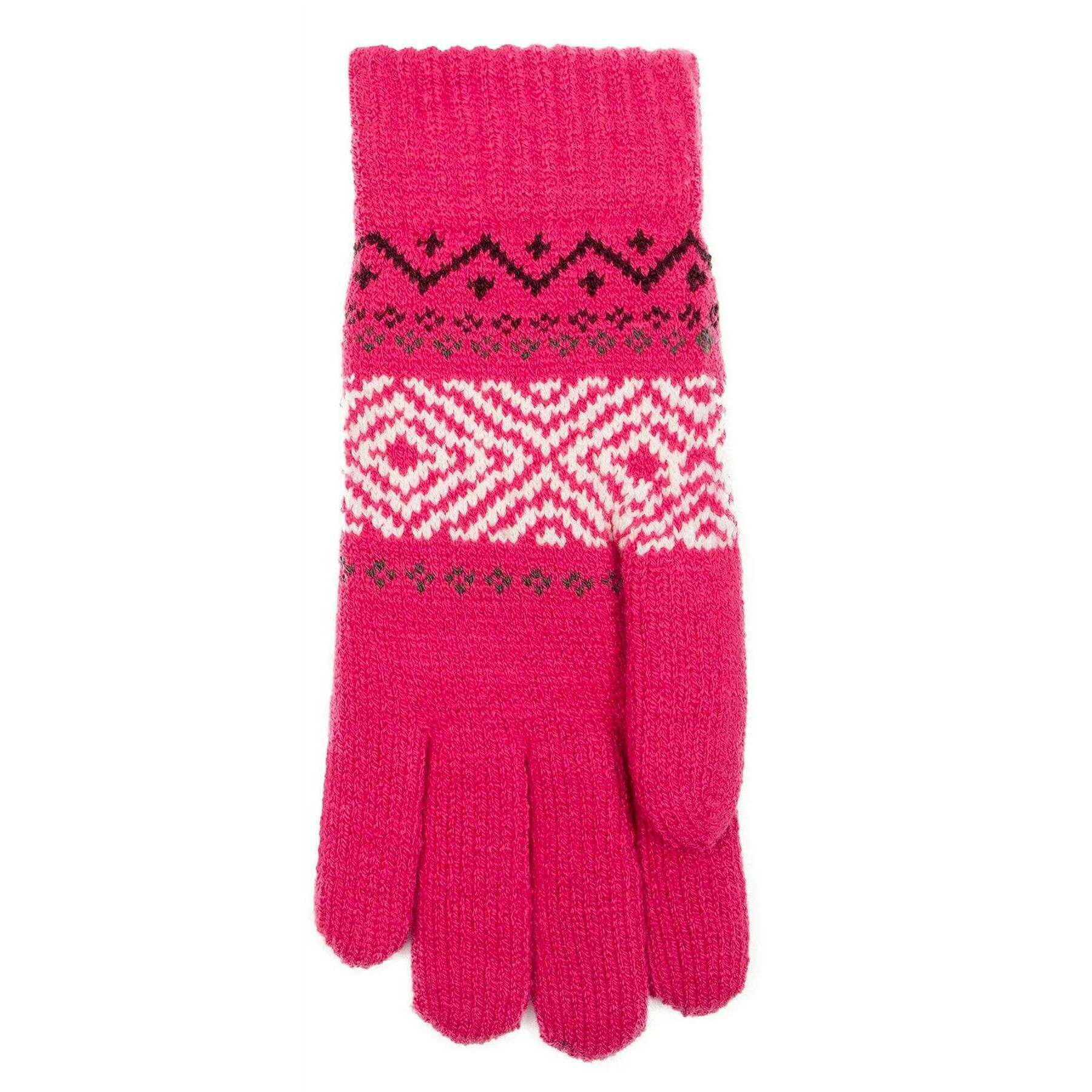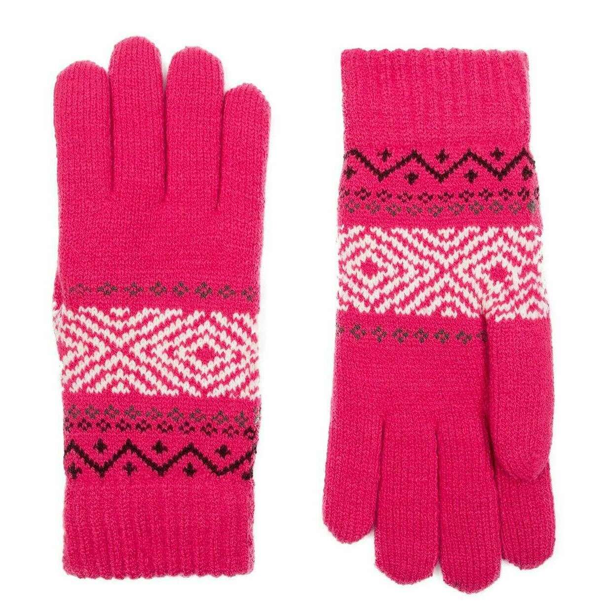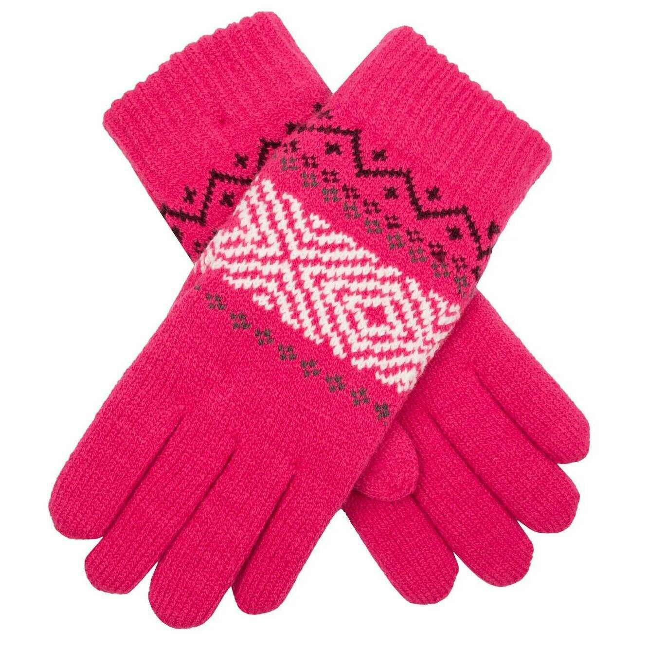 These women's jacquard geometric knitted gloves by the brand Dents are made from 80% acrylic and 20% nylon and are showcased in pink. Also the fuchsia pink gloves are designed in a plain pattern, It is recommended to hand wash only to keep these gloves in good condition. All the gloves come complete with dents tags. The Dents Jacquard Geometric Knitted Gloves - Fuchsia Pink feature an eye-catching pink, burgundy and white geometric design. These ribbed cuff gloves ensure a secure and comfortable fit, whilst doing everyday activities. Perfect for everyday wear in the colder months.