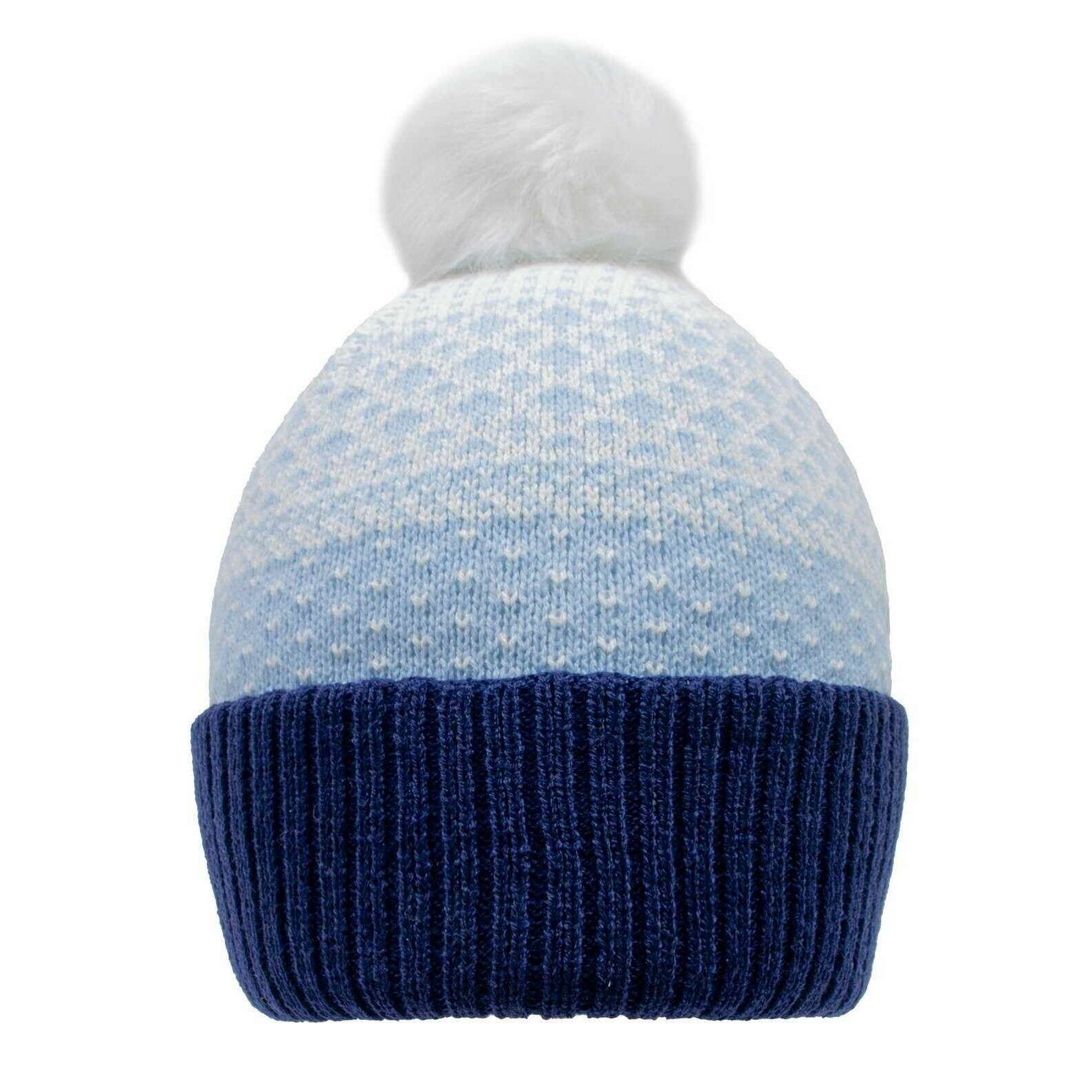 Dents Jacquard Polka Dot Knitted Bobble Hat - Pale Blue/Navy