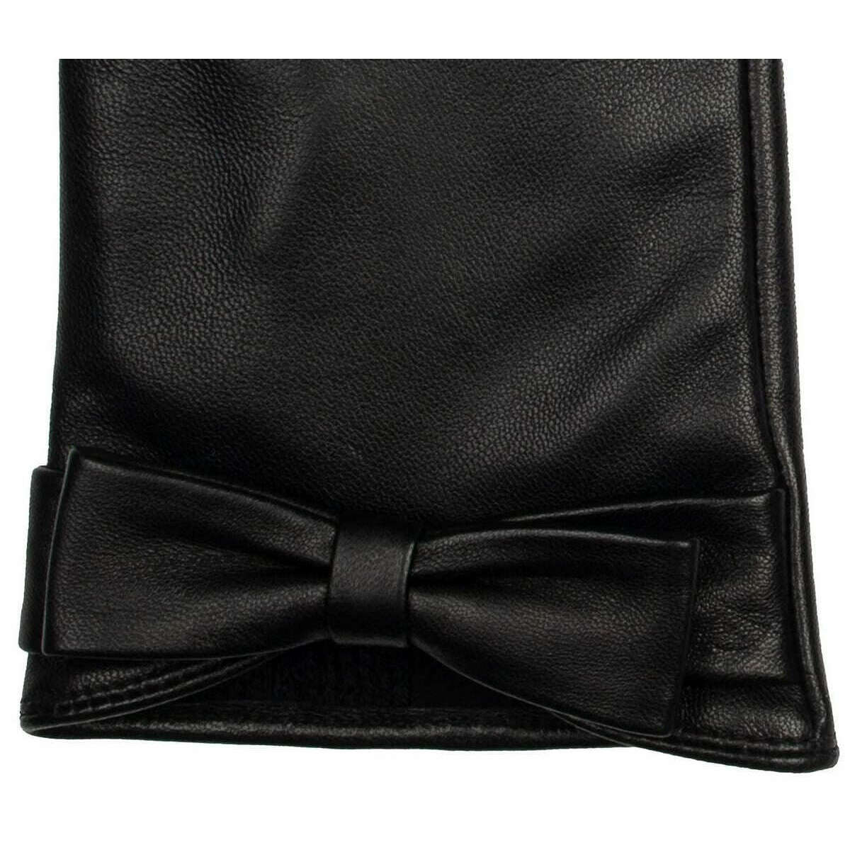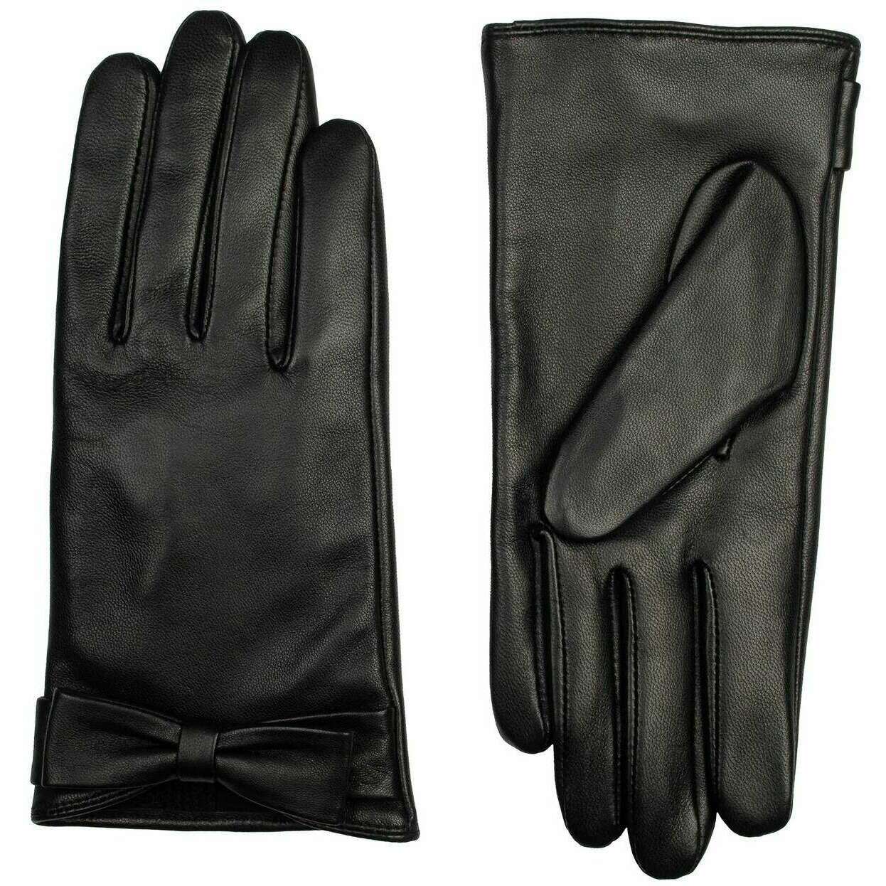 These women's laurie bow leather gloves have been made from 100% leather and knitted acrylic lining, featured in a black colour and are from the brand Dents. Also the black gloves are designed in a plain pattern, All the gloves come complete with dents tags. The Dents Laurie Bow Leather Gloves - Black feature a gorgeous bow at the wrist to add a feminine sophistication. Lined with cosy acrylic provides your hands with an incredibly comfortable experience and a warm wear due to the fabric being a great insulator trapping the heat. This pair features touchscreen technology enabling you to go on your phone without compromising warmth.