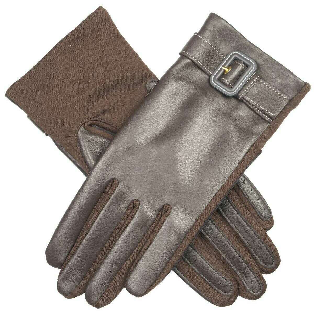 Brought to you by the brand Dents, these mocca brown women's lyla leather backed water-resistant gloves are made from 100% polyester inseam. Also the mocca brown gloves are designed in a plain pattern, All the gloves come complete with dents tags. The Dents Lyla Leather Backed Water-Resistant Gloves - Mocca Brown are a great choice for a high-end and luxurious look. They feature a stretch polyester palm for a modern silhouette, as well as a comfortable wear and a water-resistant leather to keep your hands protected from the cold rain. To ensure a clean finish the seams are hidden thanks to inseam stitching. Completing this pair is the contrast stitching leather buckle at the wrist.