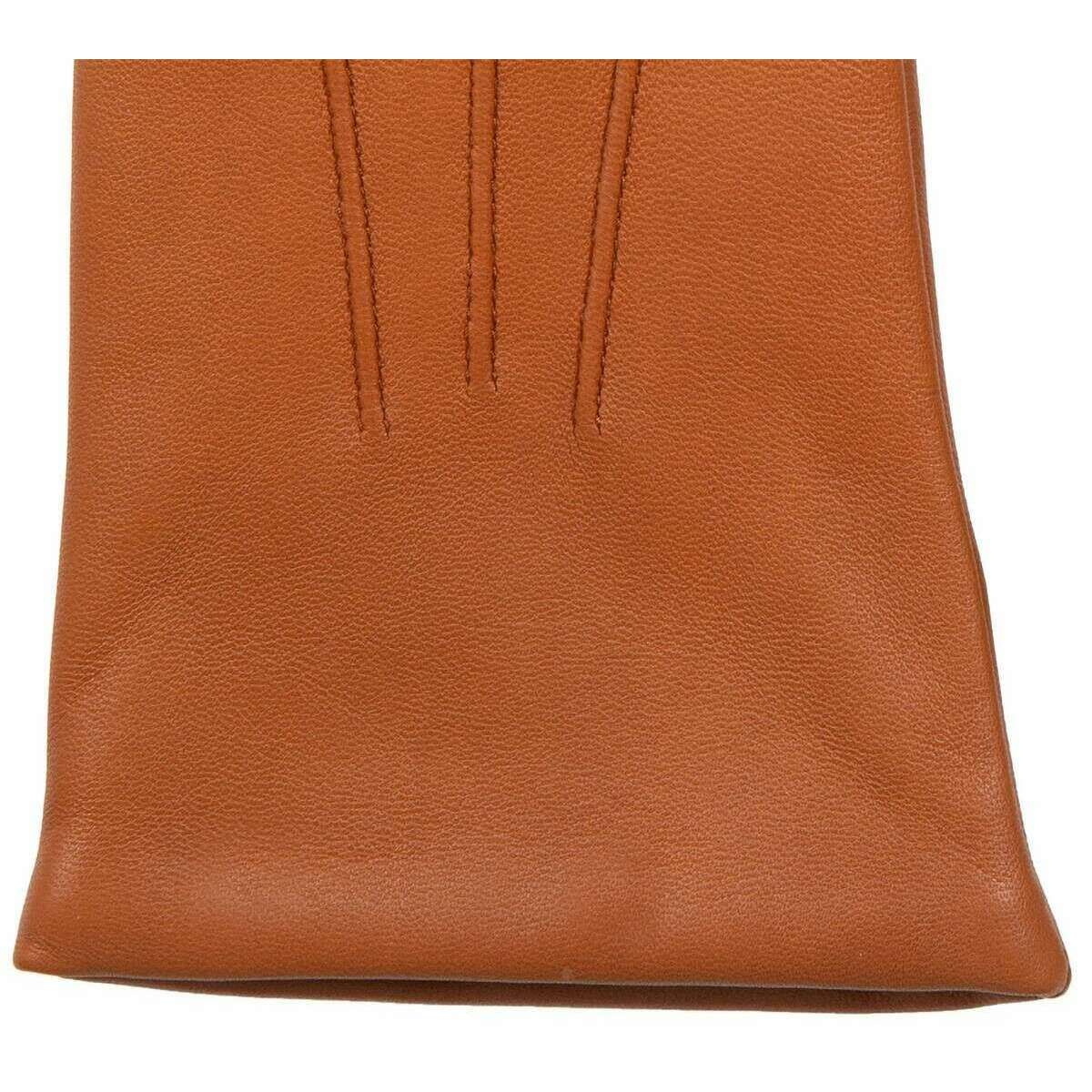 Manufactured from 100% hairsheep leather and cashmere lining are these cognac tan women's maisie cashmere lined touchscreen leather gloves by the designer Dents. Also the cognac tan gloves are designed in a plain pattern, All the gloves come complete with dents tags. The Dents Maisie Cashmere Lined Touchscreen Leather Gloves - Cognac Tan are a luxurious and elegant accessory, perfect for adding sophistication and comfort to any outfit. The interior of these gloves is lined with smooth, luxurious cashmere which adds a layer of warmth and enhance comfort, making the gloves a pleasure to wear. The added touchscreen feature makes these gloves an ideal accessory for those looking to add a touch of elegance and practicality to their cold-weather wardrobe.