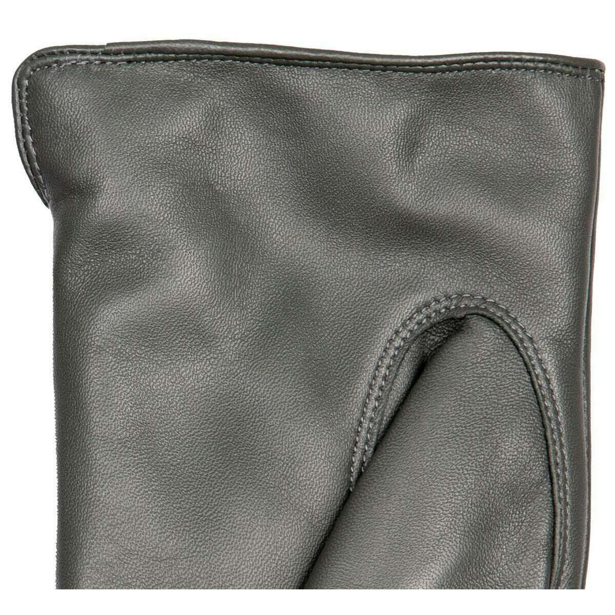 Introducing these women's maria touchscreen leather gloves by Dents, they are manufactured from 100% hairsheep leather and polyester faux fur lining in a charcoal grey colour. Also the charcoal grey gloves are designed in a plain pattern, All the gloves come complete with dents tags. The Dents Maria Touchscreen Leather Gloves - Charcoal Grey allow you to use your touchscreen devices without having to take your hand out from inside the warm, faux fur lining. They showcase a stylish design that will bring elegance and sophistication to your winter wear, ensuring your hands are looked after. One machine sewn point can be seen while also giving you a side vent and finished with a gorgeous Dents D stud.