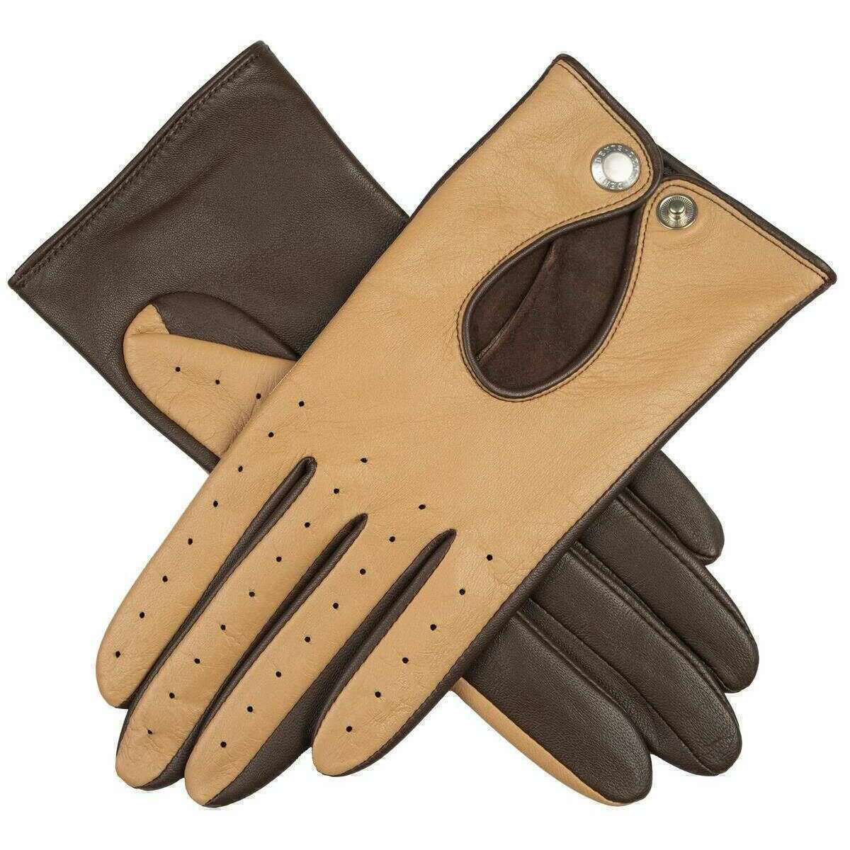 Dents Oulton Touchscreen Leather Driving Gloves - Toffee Beige/Mocha Brown
